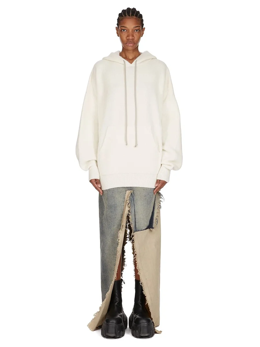 RICK OWENS FW25 CONCORDIANS RUNWAY HUN HOODIE IN MILK ALPACA BREIWERK