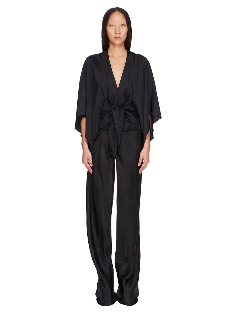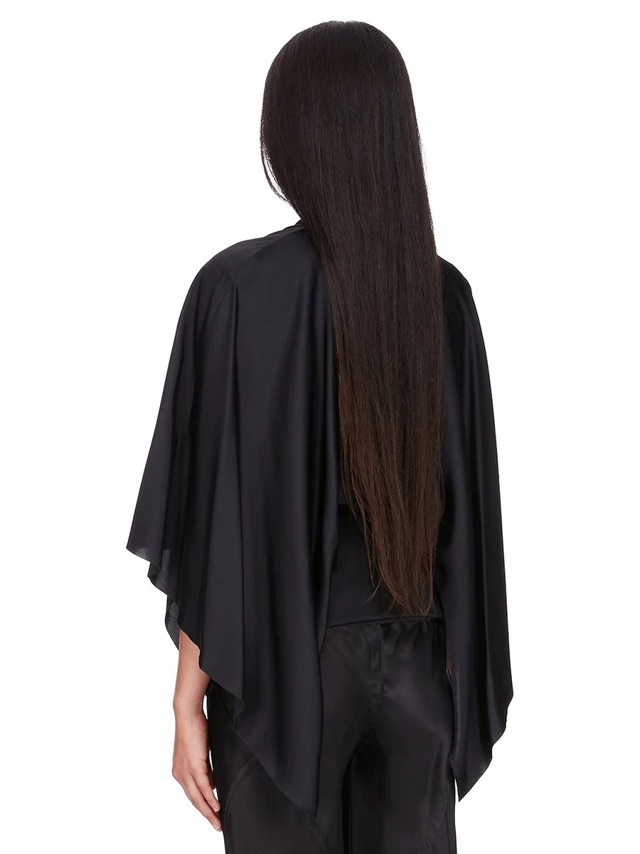 RICK OWENS FW25 CONCORDIANSHALF MOON TOP IN ZWART GEWASSEN CHARMEUSE