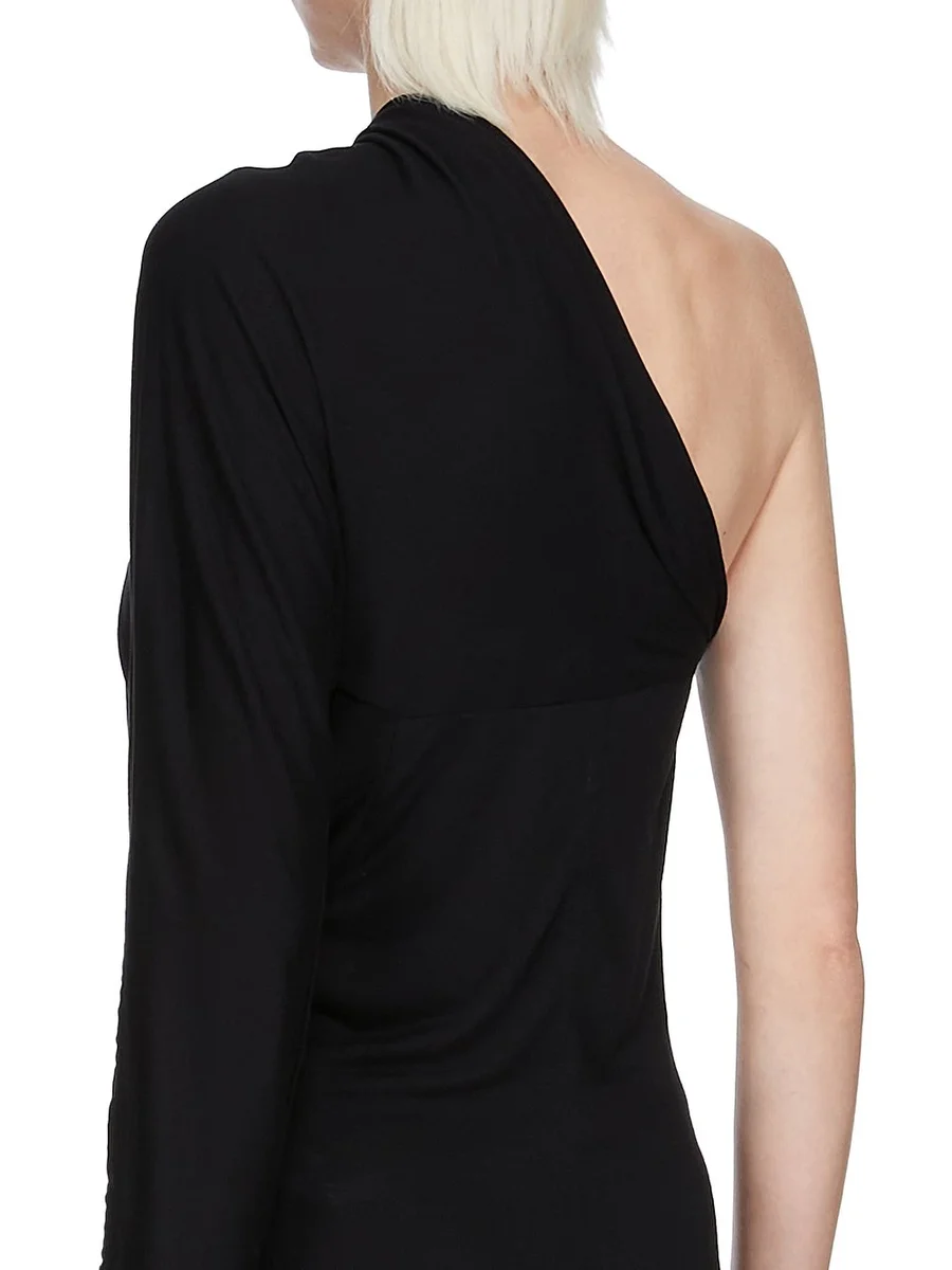 RICK OWENS FW25 CONCORDIANS DIANA TOP IN ZWARTE, VLOEIENDE VISCOSE JERSEY