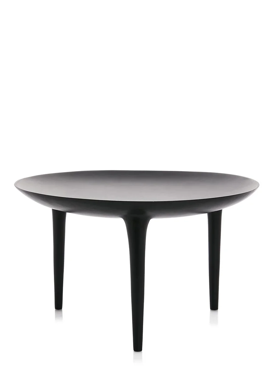 De RICK OWENS BRAZIER in zwart brons is een ronde tafel met drie poten en een gepolijst oppervlak.