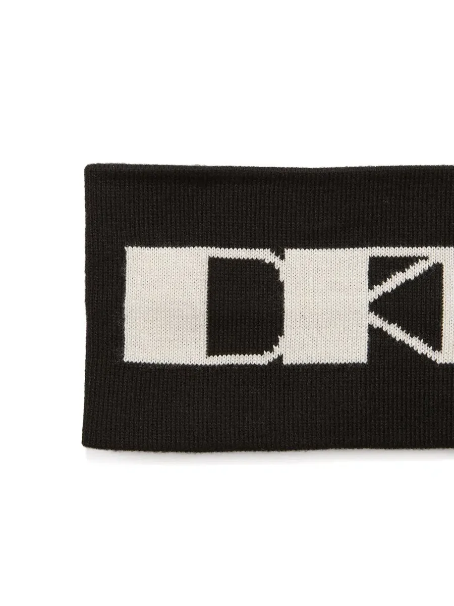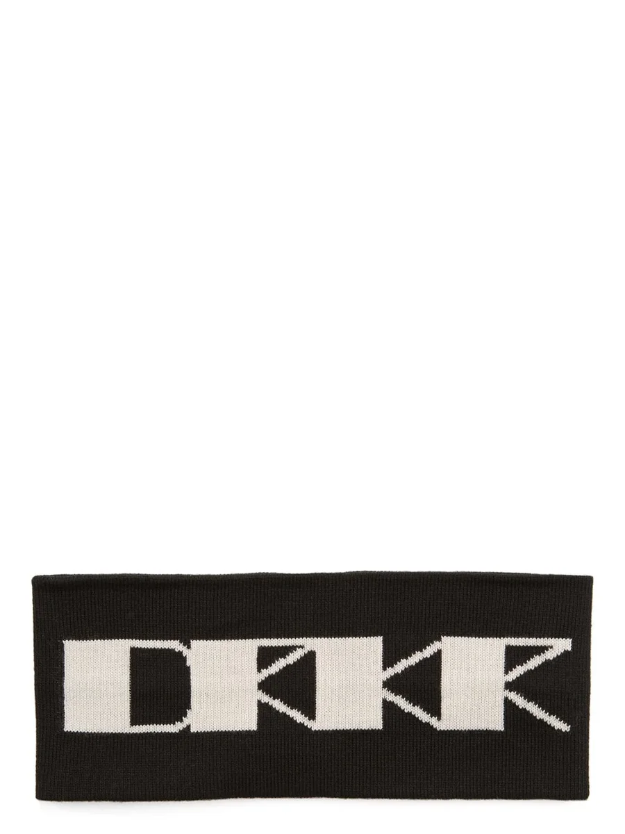 DEZE HOOFDBAND IS 6 CM BREED EN 21 CM LANG EN HEEFT HET DRKR-TEKEN OP DE VOORKANT IN JACQUARD BREINING.