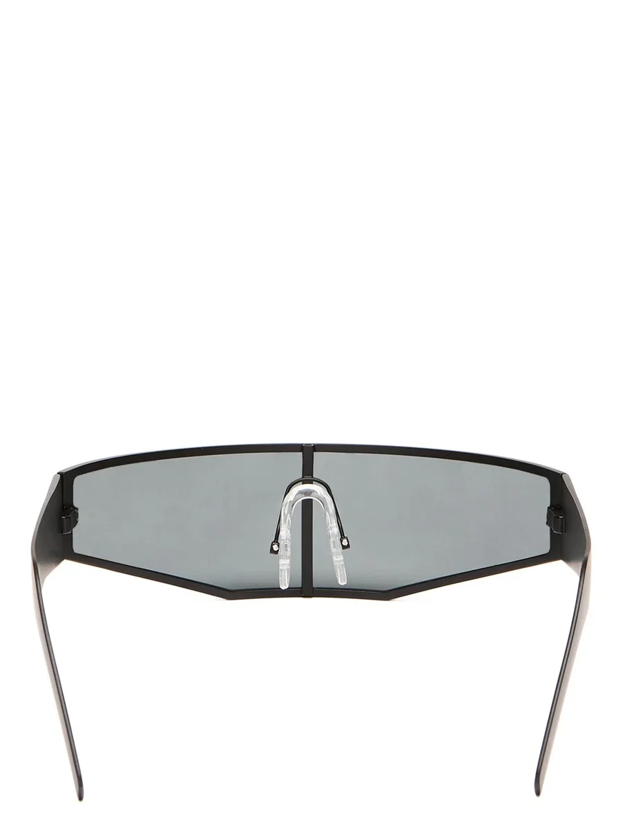 DEZE CYCLOPS ZONNEBRIL HEEFT ÉÉN OMHULLENDE LENS MET EEN COMPLEET ROESTVRIJ STALEN MONTUUR, EEN RUBBEREN NEUSZADEL EN MINIMALE FLEXIBELE SCHARNIEREN BIJ DE POTEN. NIET GESCHIKT VOOR CONVERSIE NAAR BRILLEN OP STERKTE.