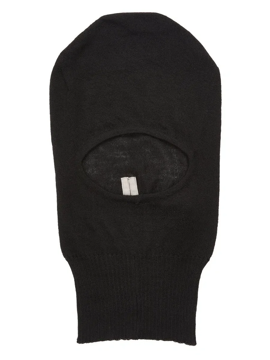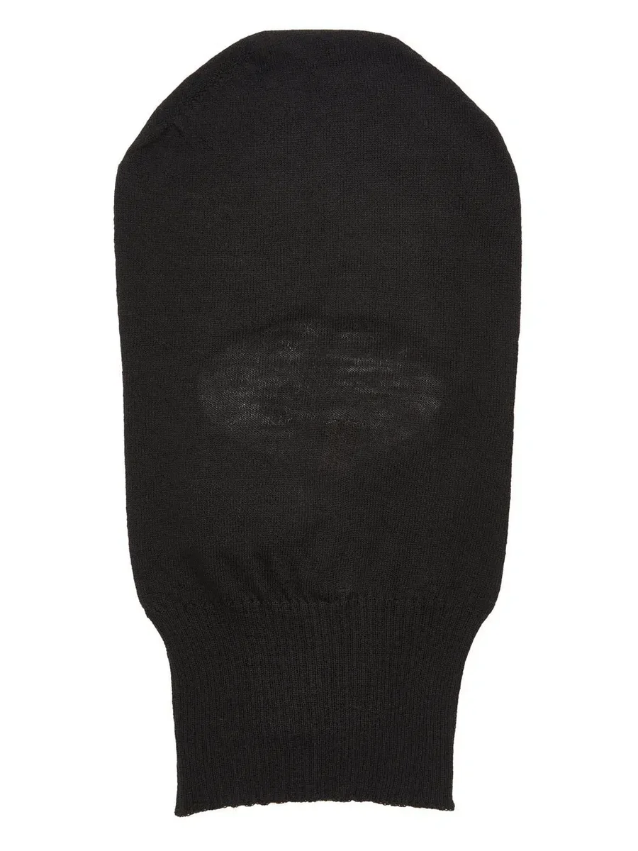 DEZE SCHEDEL IS EEN BALACLAVA DIE HOOFD EN NEK BEDEKT MET EEN BREDE, AFGERONDE OPENING VOOR OGEN EN NEUS. DEZE HEEFT EEN BREDE, GERIBD NEK.