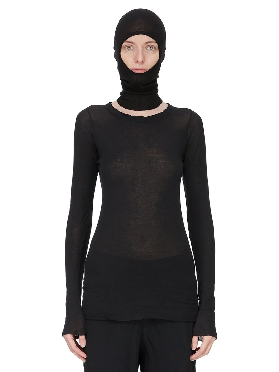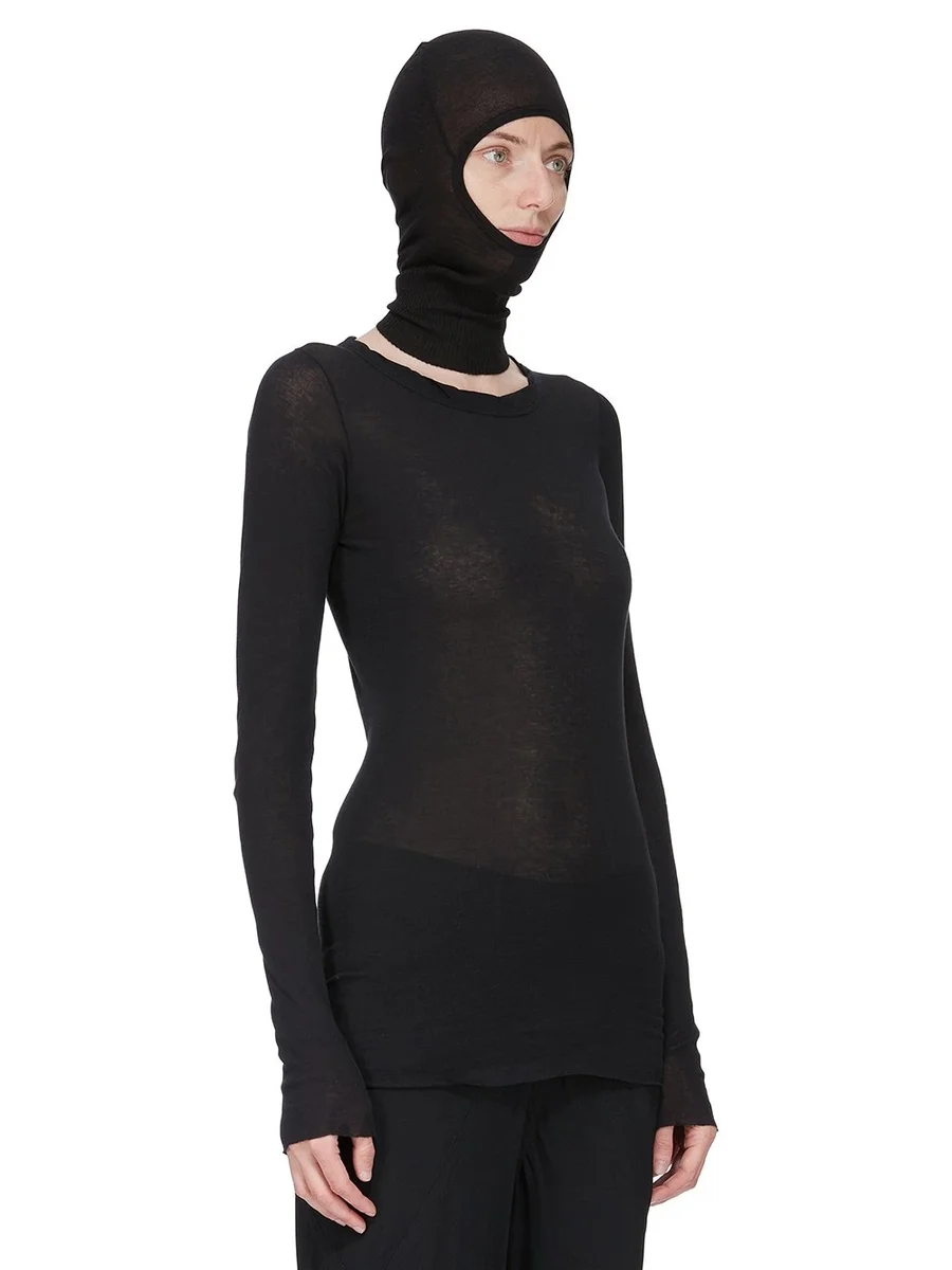 RICK OWENS FW25 CONCORDIANS SCHEDEL IN ZWART LICHTGEWICHT RASATO GEBREID