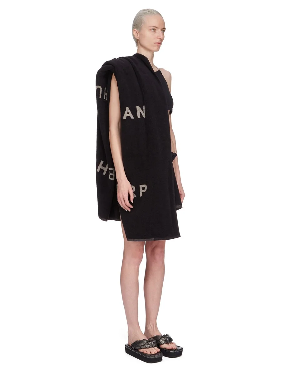 RICK OWENS STRANDHANDDOEK IN ZWART/PARELMOTIEF KATOEN TERRRY