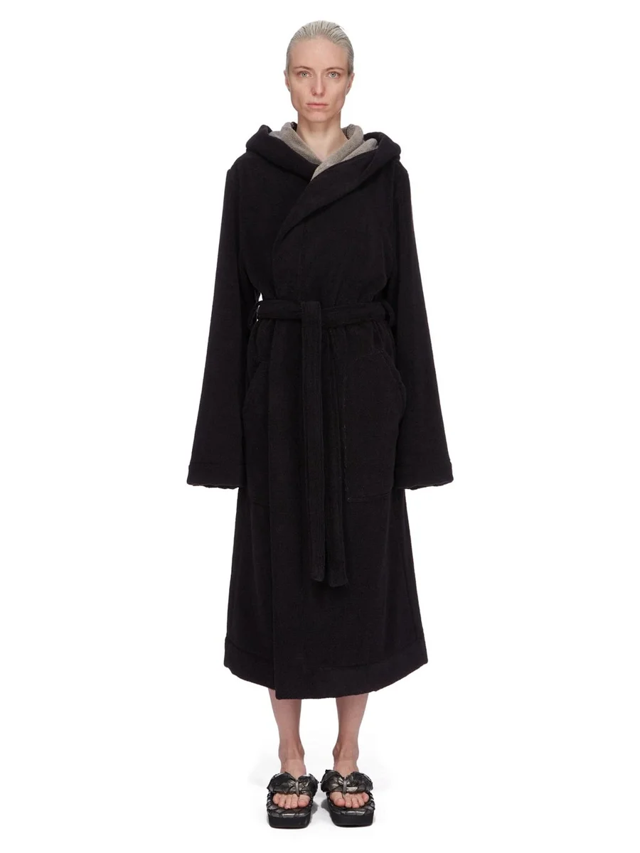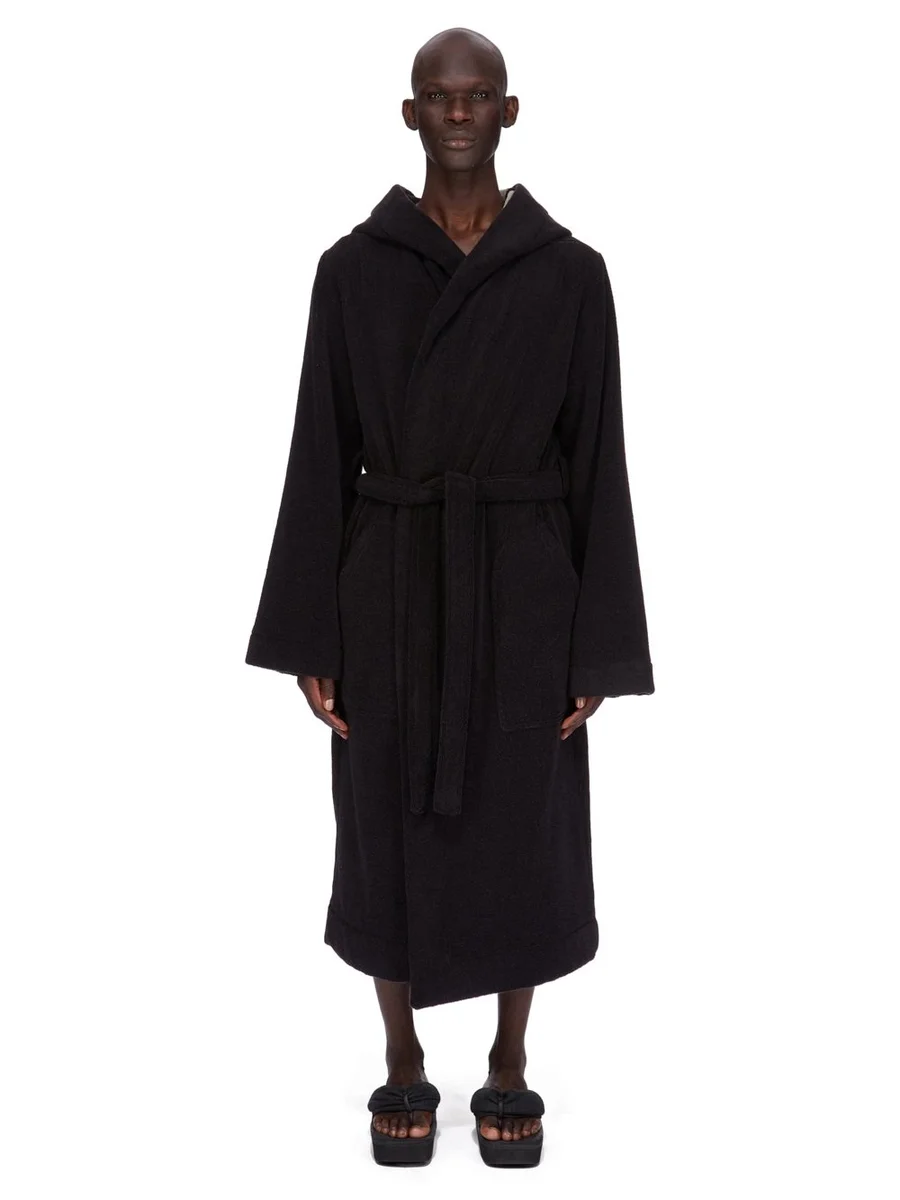RICK OWENS STRANDJAS IN ZWART/PARELWITTE KATOENEN BADSTOF