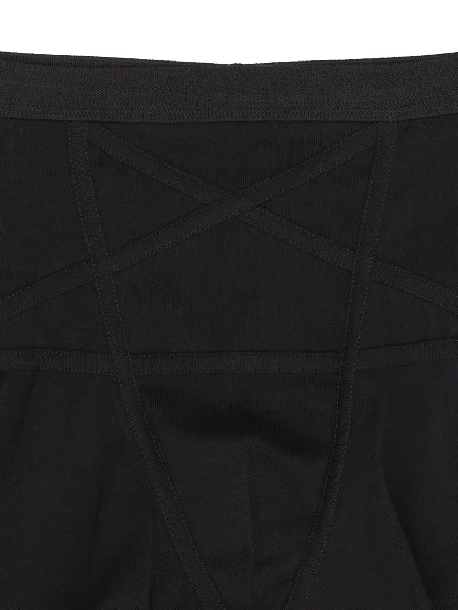 RICK OWENS FW25 CONCORDIANS PENTA BOXERSLIP IN ZWARTE KATOENEN STRETCH RIB JERSEY