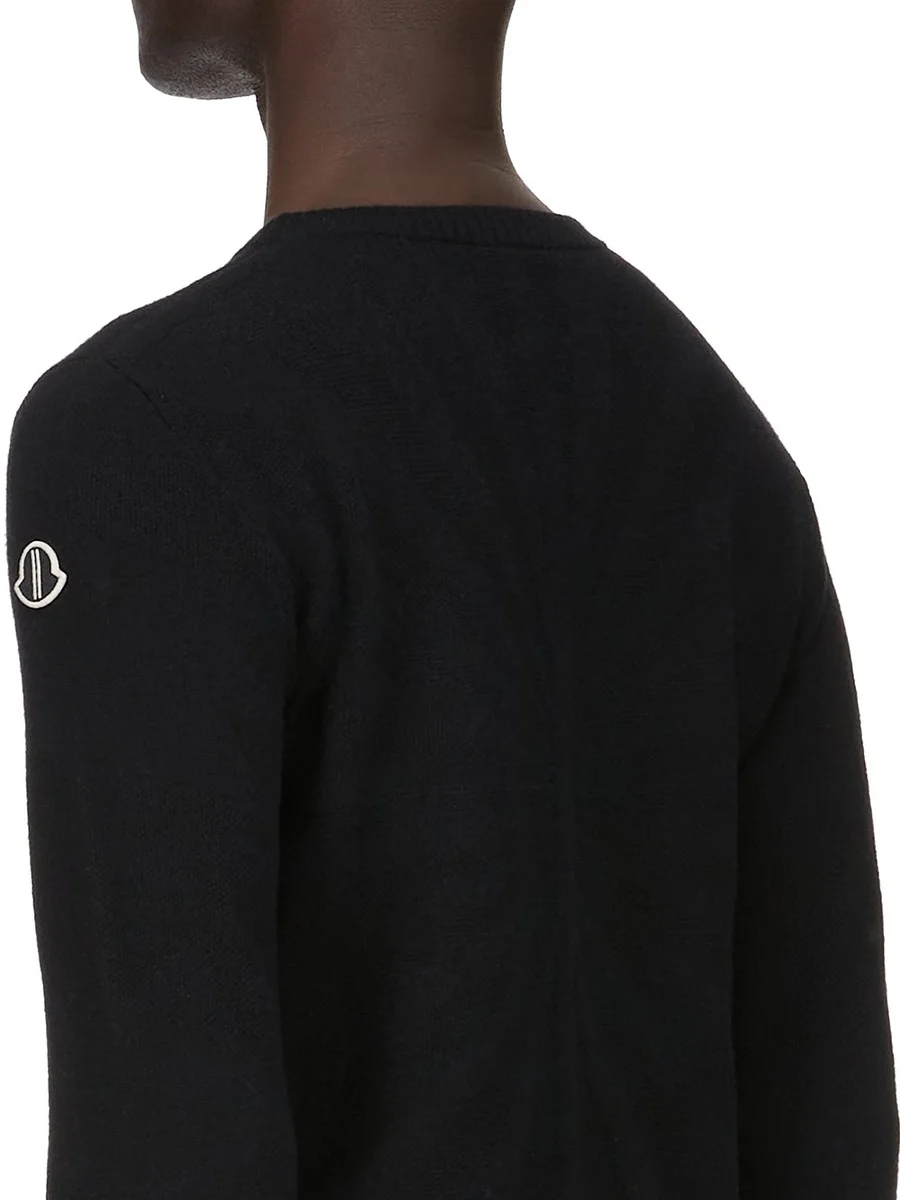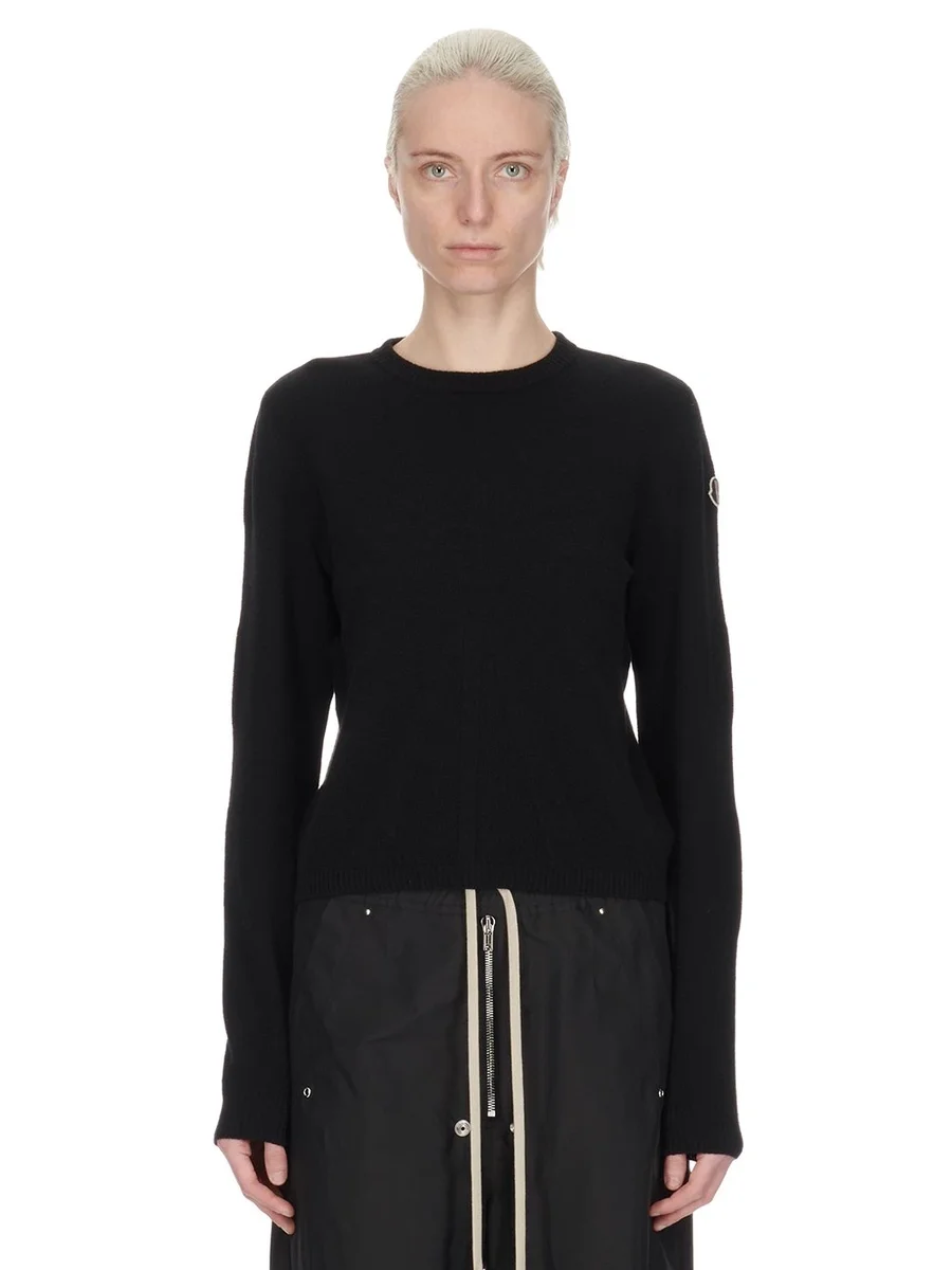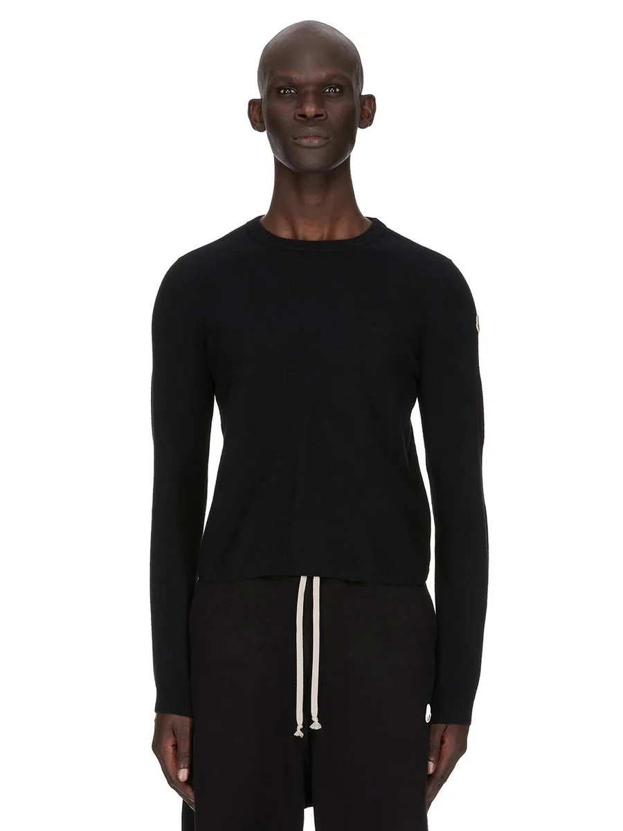 MONCLER + RICK OWENS FW24 BIKER RONDE HALS IN ZWARTE WOL-KASJMIERMIX