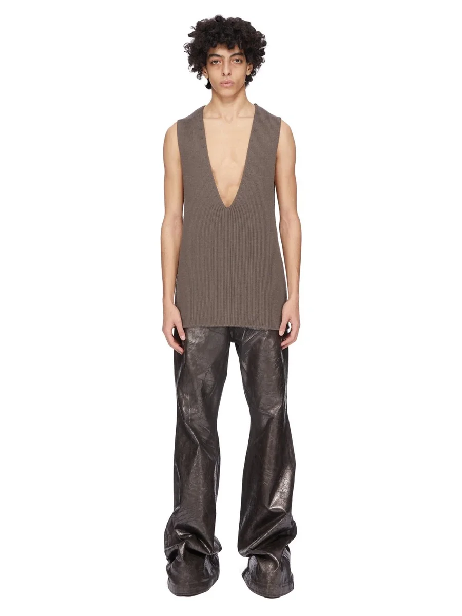 RICK OWENS FW25 CONCORDIANS RUNWAY V-TANK IN DARKDUST WOOL