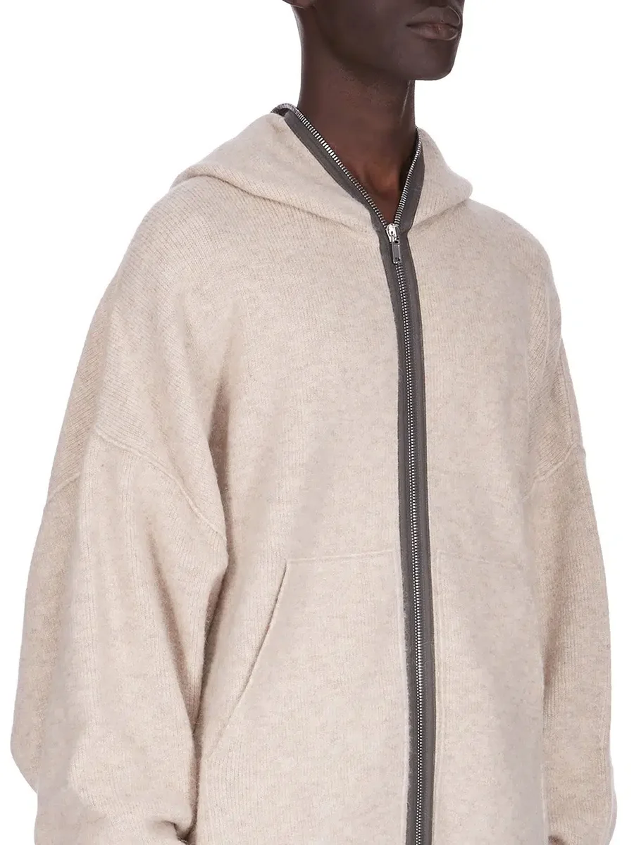 RICK OWENS FW25 CONCORDIANS RUNWAY GIMP HOODIE IN DNA DUST ALPACA KNIT