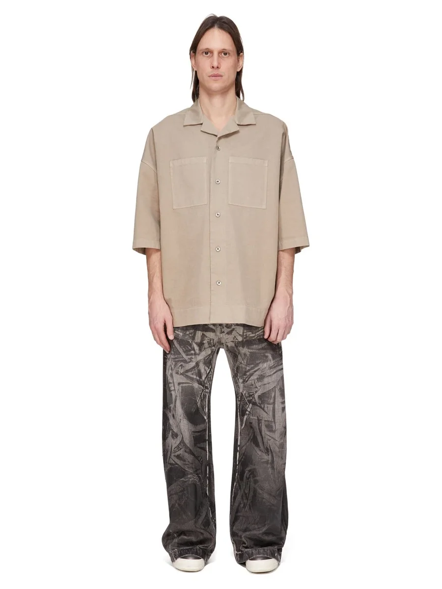 DEZE MIDDELZWAARDE GEWASSEN FOIL DENIM IS GEMAAKT OP EEN 13 OZ GEWASSEN FOIL DENIM. HET KLAARGEKLEDINGSTUK WORDT GEBLEEKT TOT EEN VUILE PARELKLEUR, DAARNA WORDT EEN ZWARTE FOLIE-OVERLAAG AANGEBRACHT EN TOT SLOT WORDT HET KLEDINGSTUK GEWASSEN OM EEN ONREGELMATIGE UITSTRALING TE KRIJGEN.
