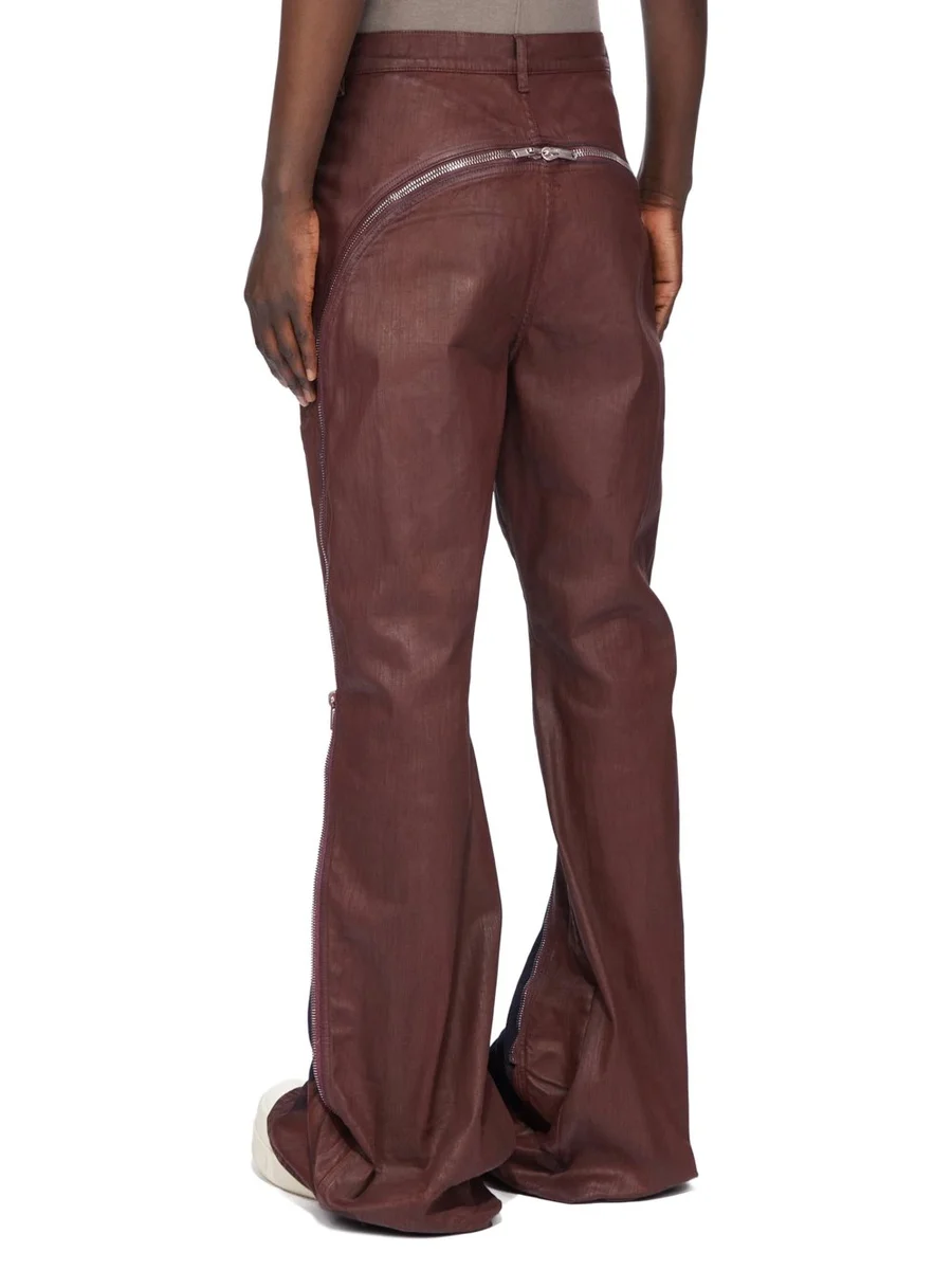 DEZE BOLAN BANANA IS EEN HIGH-WAISTED, SLIM FIT JEANS MET 6 ZAKKEN EN EEN BOOT CUT TOT OP DE VLOER. DEZE HEEFT EEN TAILLEBAND MET RIEMLUSSEN EN KLINKNAGELS OP DE ZAKKEN EN SLUIT MET EEN VERBORGEN KNOOPSLUITING. DEZE HEEFT EEN LANGE RITSSLUITING DIE VAN HET MIDDEN VAN DE BUIS LOOPT, OM DE HEUP NAAR DE ZOOM. DE RITSSLUITING KAN AAN DE ACHTERKANT WORDEN OPENGEZET OM DE BUIS TE ZIEN EN OOK VANAF DE ZOOM OMHOOG OM EEN INTERN, UITLOPEND PANEEL IN DE BEENBEEN TE ZIEN.