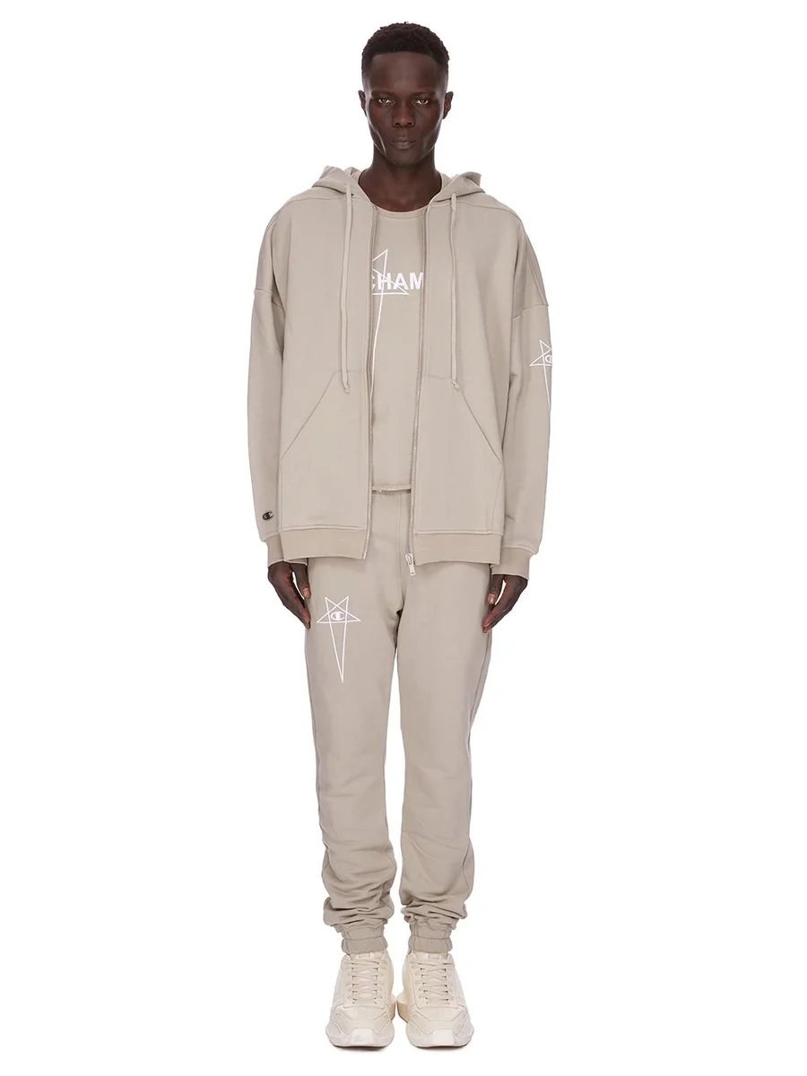CHAMPION X RICK OWENS SS25 JOGGINGBROEK IN PEARL COMPACT FELPA JERSEY