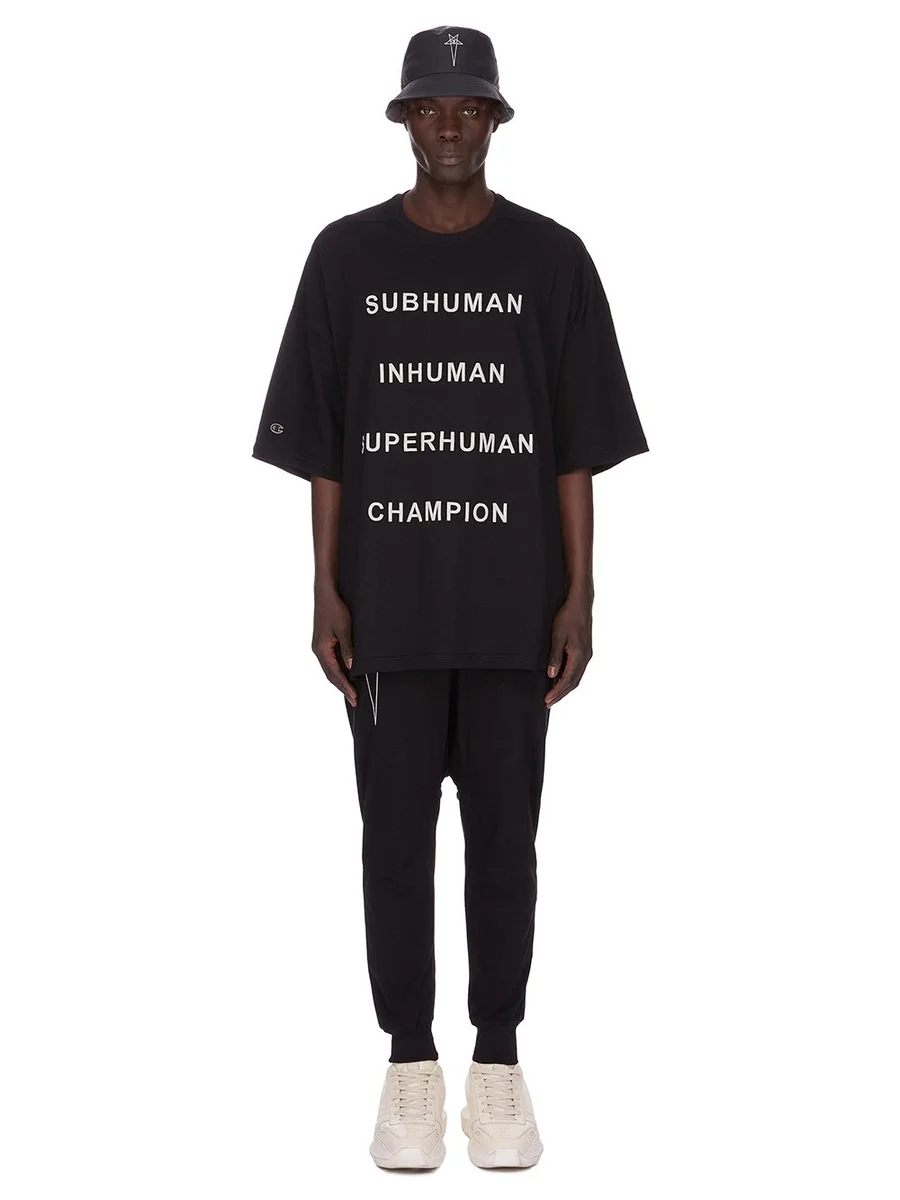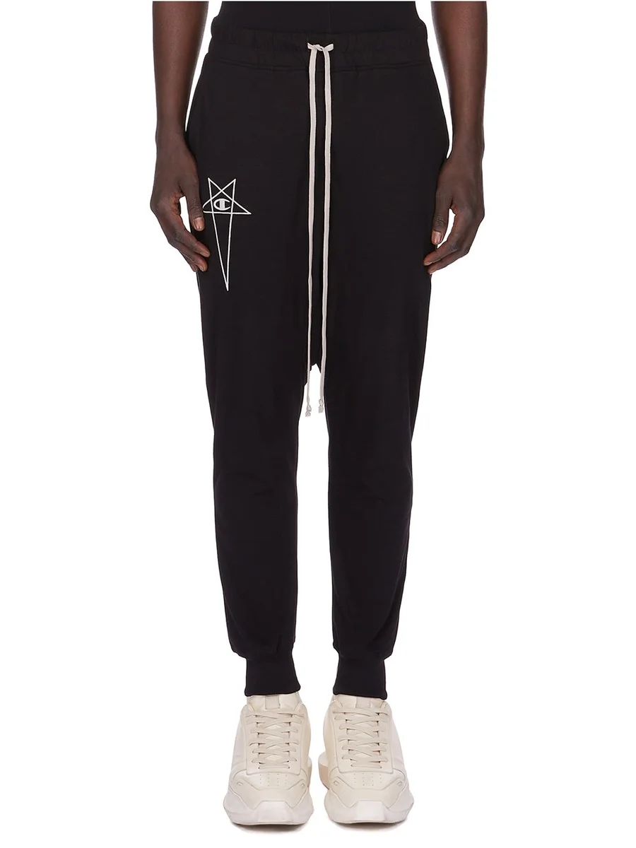 CHAMPION X RICK OWENS SS25 PRISONER TREKKOORD IN ZWARTE KATOENEN JERSEY
