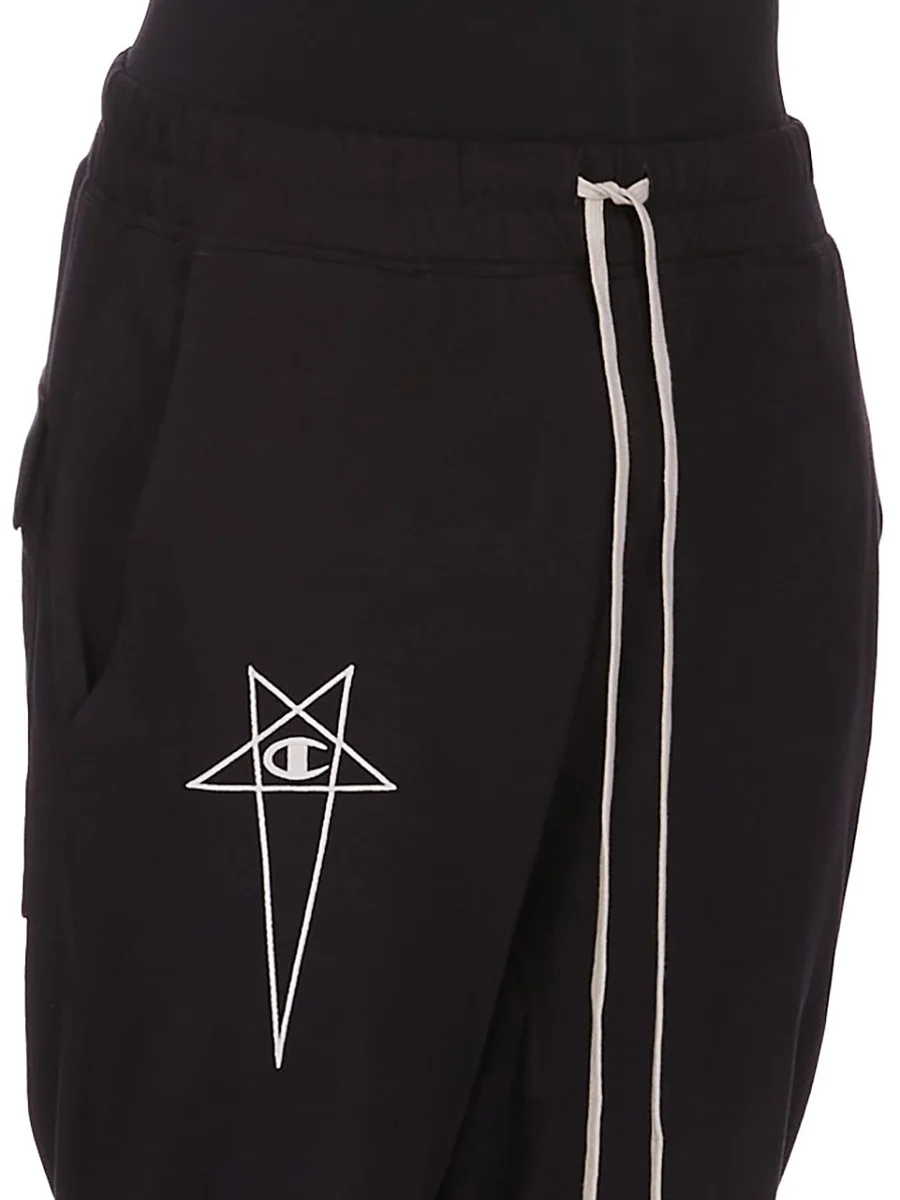 ZE HEBBEN EEN GEBORDUURD 3D CHAMPION X RICK OWENS PENTAGRAM LOGO OP DE VOORKANT EN EEN CHAMPION LOGO OP DE ACHTERKANT VAN DE HEUP.