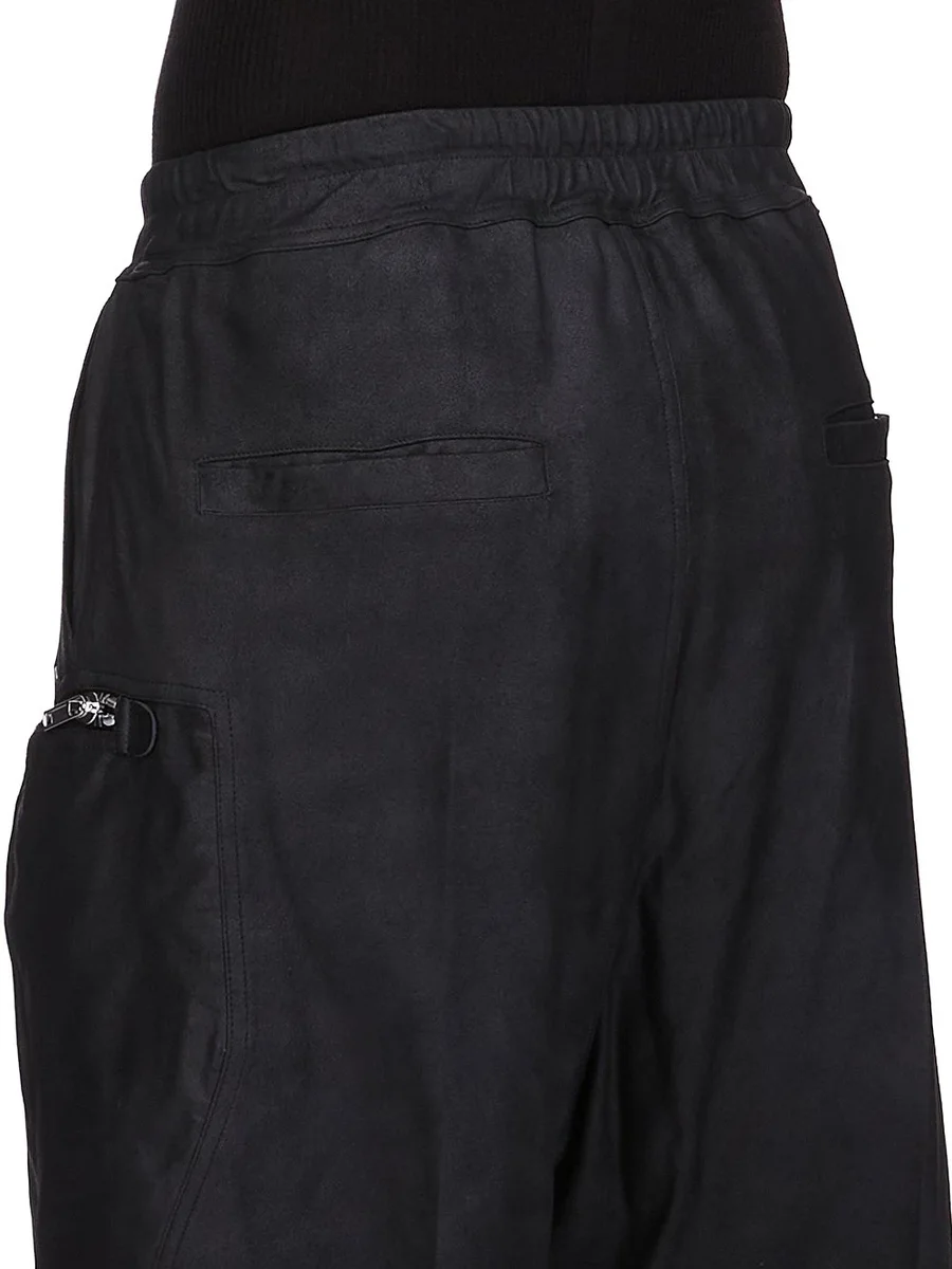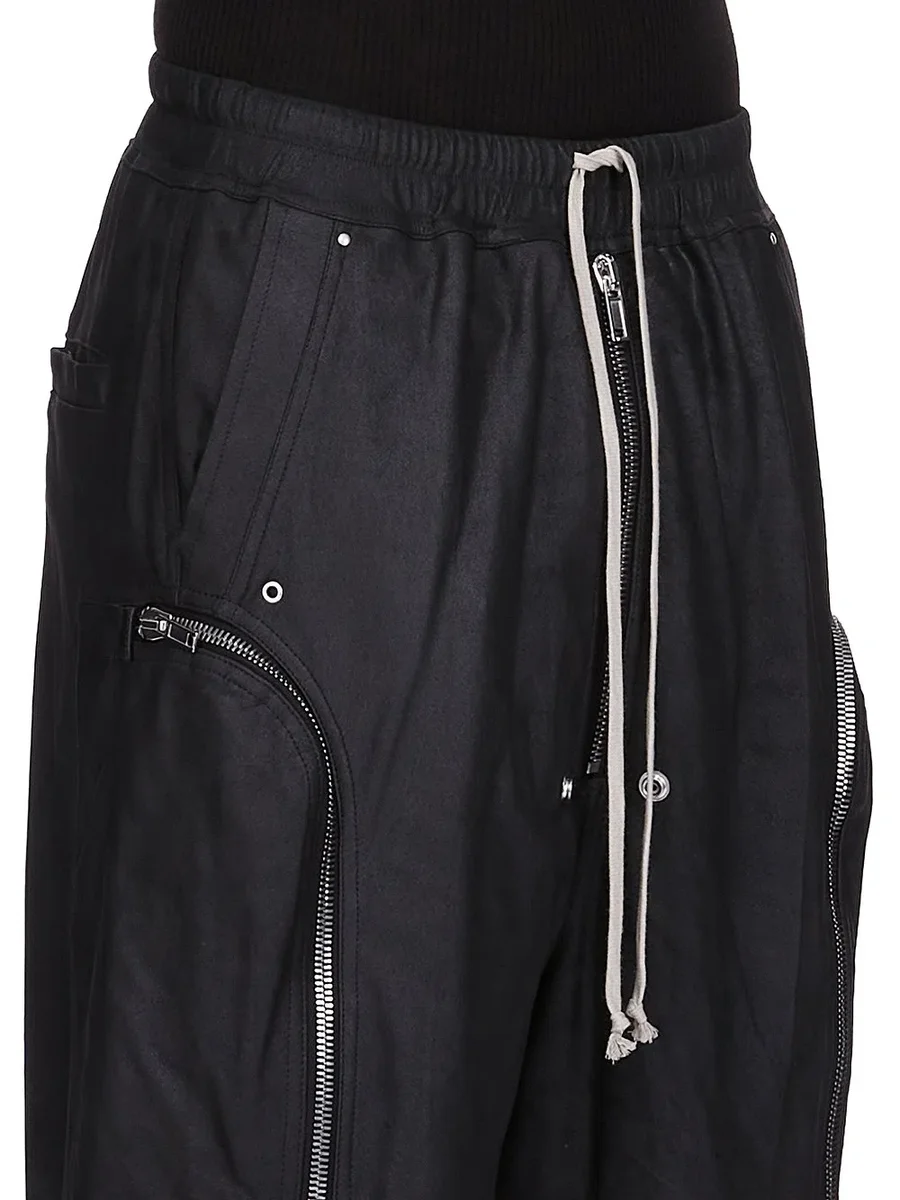 DEZE BAUHAUS BELA’S ZIJN KNIEHOOG EN HEBBEN EEN ELASTISCHE TAILLEBAND MET TREKKOORD. ZE HEBBEN EEN ZICHTBARE BELA-RITS IN HET MIDDEN MET TWEE DRUKDETAILS AAN DE ONDERKANT EN EEN LAAG KRUIS. ZE HEBBEN ZIJZAKKEN MET RAPS EN KNOOPDETAILS, BAUHAUS-ZAKKEN MET RITS EN GROTE RAPS EN ACHTERZAKKEN MET KLEP EN DRUKSLUITING.