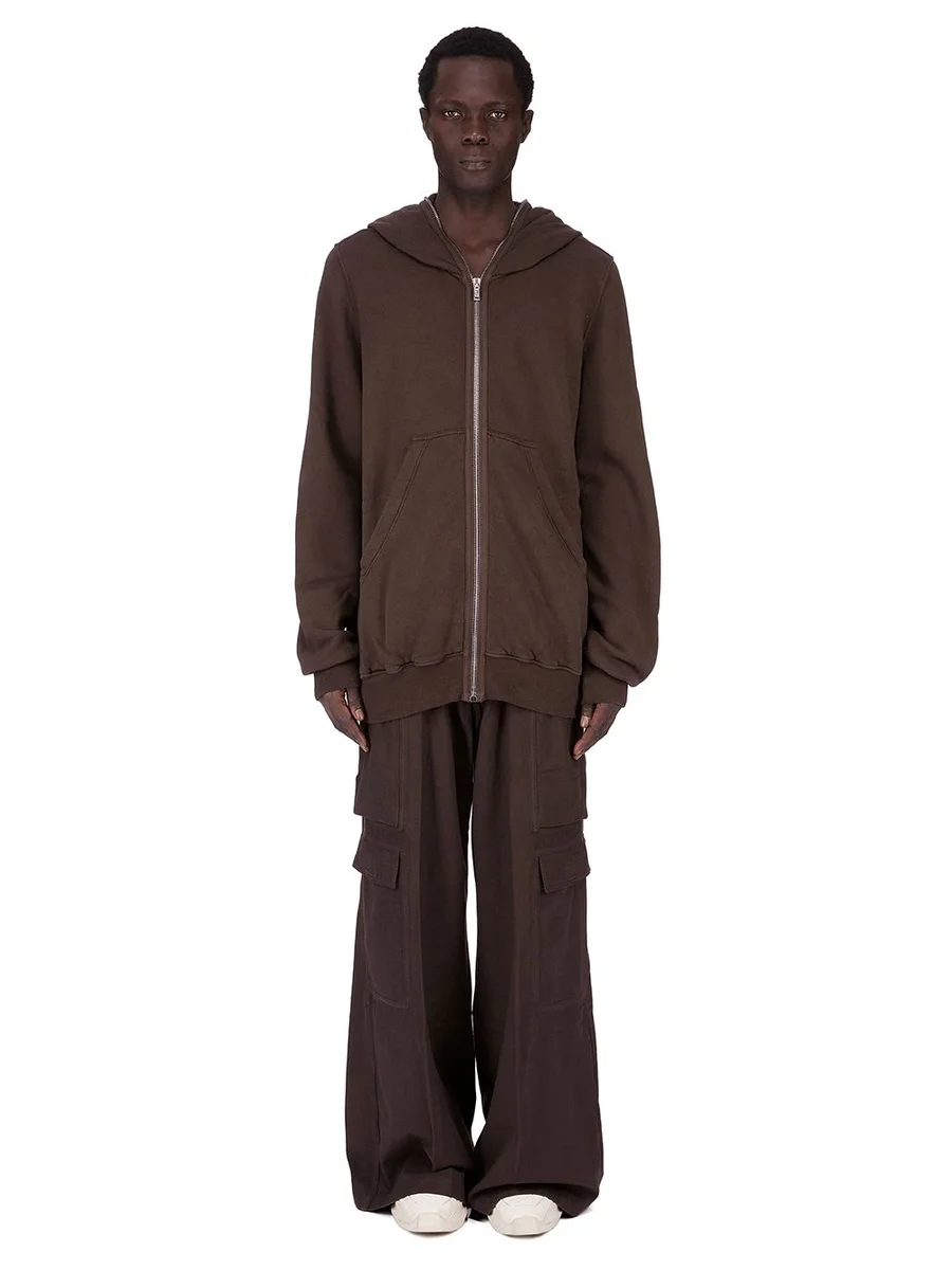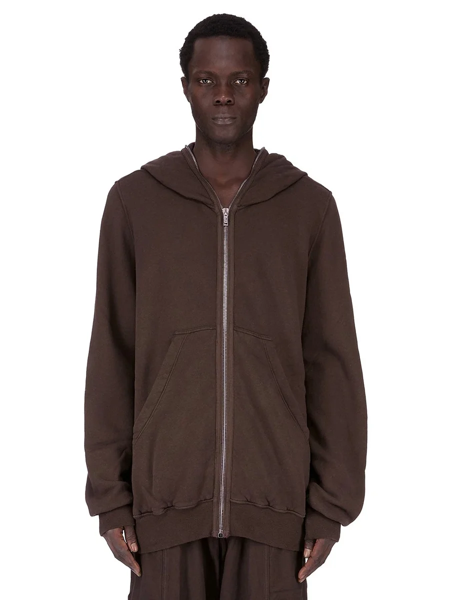 DEZE JUMBO GIMP HOODIE IS IETS ONDER DE HEUP, HEEFT LANGE MOUWEN EN EEN GROTE PASVORM. DEZE HEEFT EEN RITSSLUITING AAN DE VOORKANT MET ZICHTBARE RITSSLUITING DIE VAN DE ZOOM DOOR DE CAPUCHON LOOPT, WAARDOOR DE CAPUCHON VOLLEDIG OVER HET GEZICHT KAN WORDEN GESLOTEN. DEZE HEEFT TWEE ZIJZAKKEN AAN DE VOORKANT, GERIBD MANCHETTEN EN ZOOM EN EEN ENKELE NAAD DIE OVER HET MIDDEN VAN DE ACHTERKANT LOOPT.