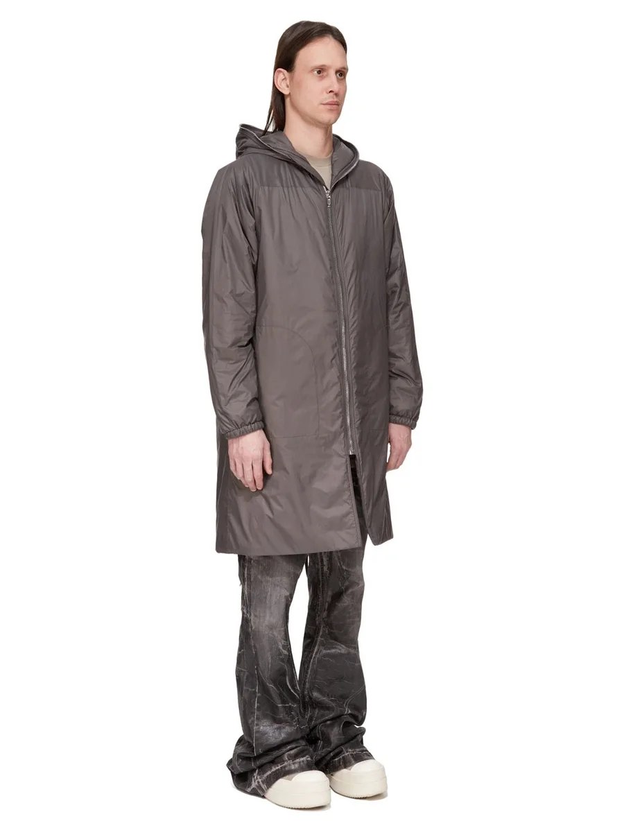DEZE SEALED WINDBREAKER JAS IS KNIELANG EN HEEFT LANGE MOUWEN. HIJ HEEFT EEN RITSSLUITING IN HET MIDDENVOOR DIE OM DE CAPUCHON HEEN LOOPT, ZODAT DEZE VOLLEDIG OVER HET GEZICHT KAN WORDEN GESLOTEN. HIJ HEEFT TWEE GROTE ZIJZAKKEN MET AFGERONDE STIKNADEN EN ZICHTBARE DRUKSLUITING, EEN KENMERKENDE NAAD IN HET MIDDENVOOR EN ELASTISCHE MANCHETTEN EN ZOMEN. DEZE VERSIE IS GEVOERD EN HEEFT INTERNE DRUKZAKKEN.