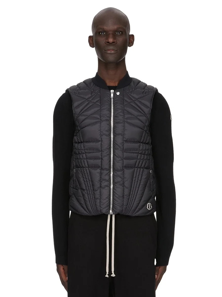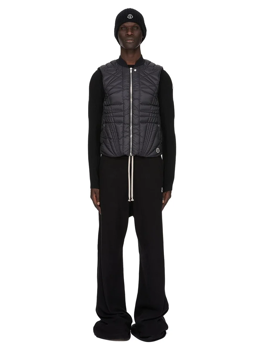 MONCLER + RICK OWENS FW24 MEGAPENTA FLIGHT VEST IN ZWART GERECYCLED LONGUE SAISON MET RADIANCE QUILTING