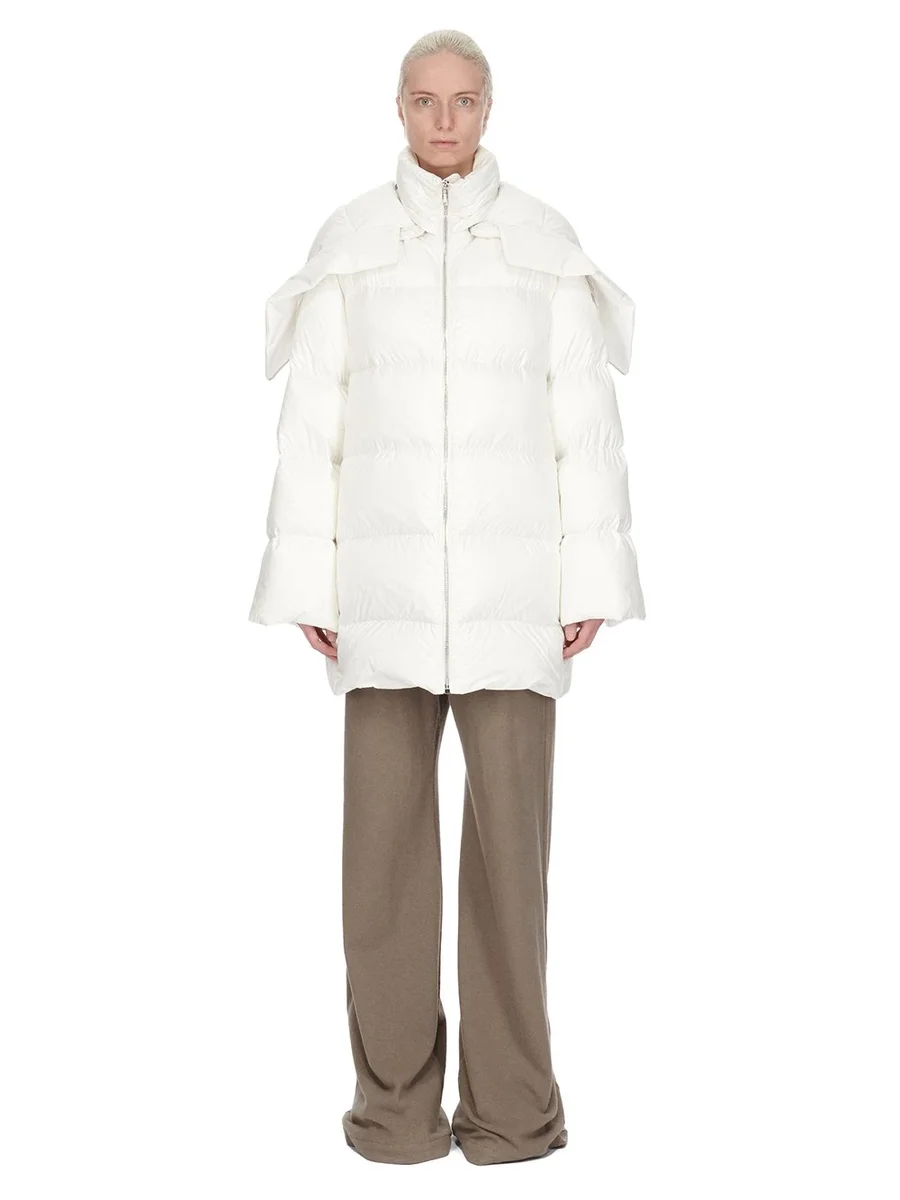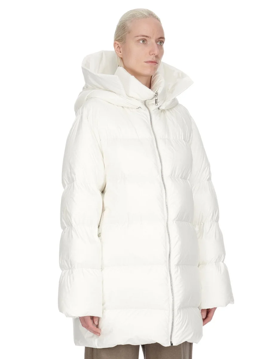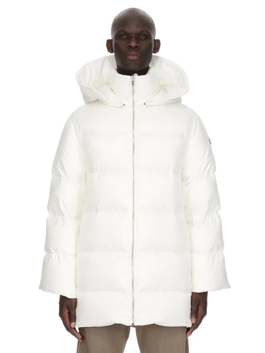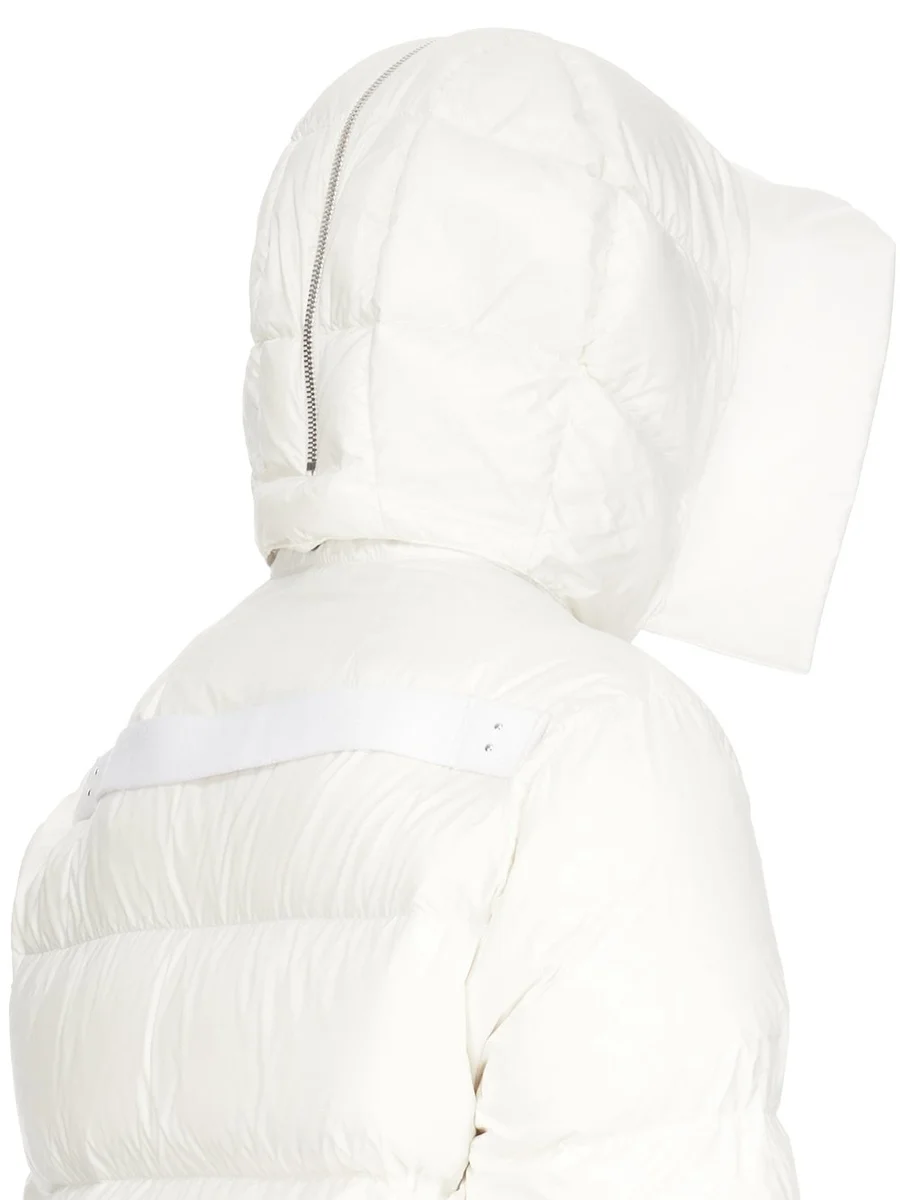 MONCLER + RICK OWENS FW24 CYCLOPISCHE JAS MET CAPUCHON IN MELK GERECYCLED LONGUE SAISON