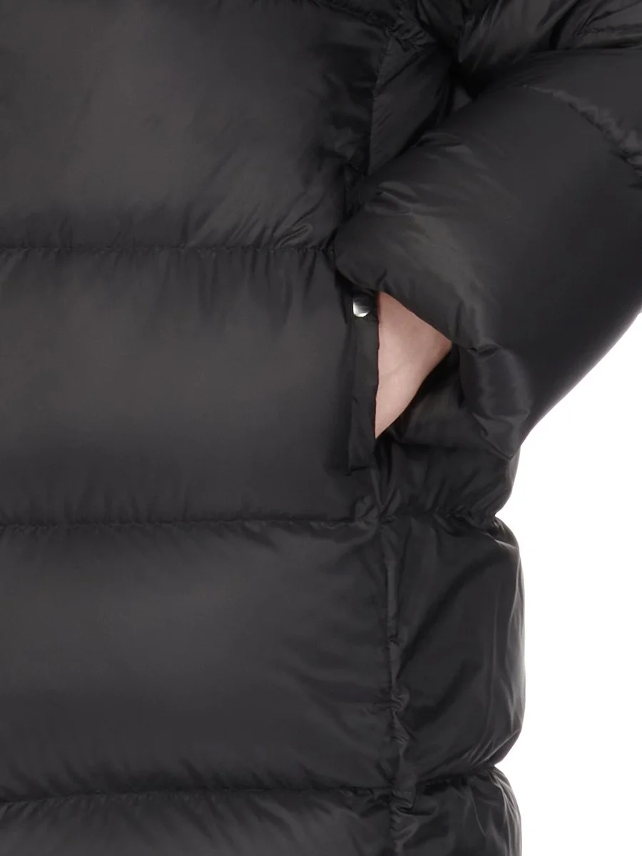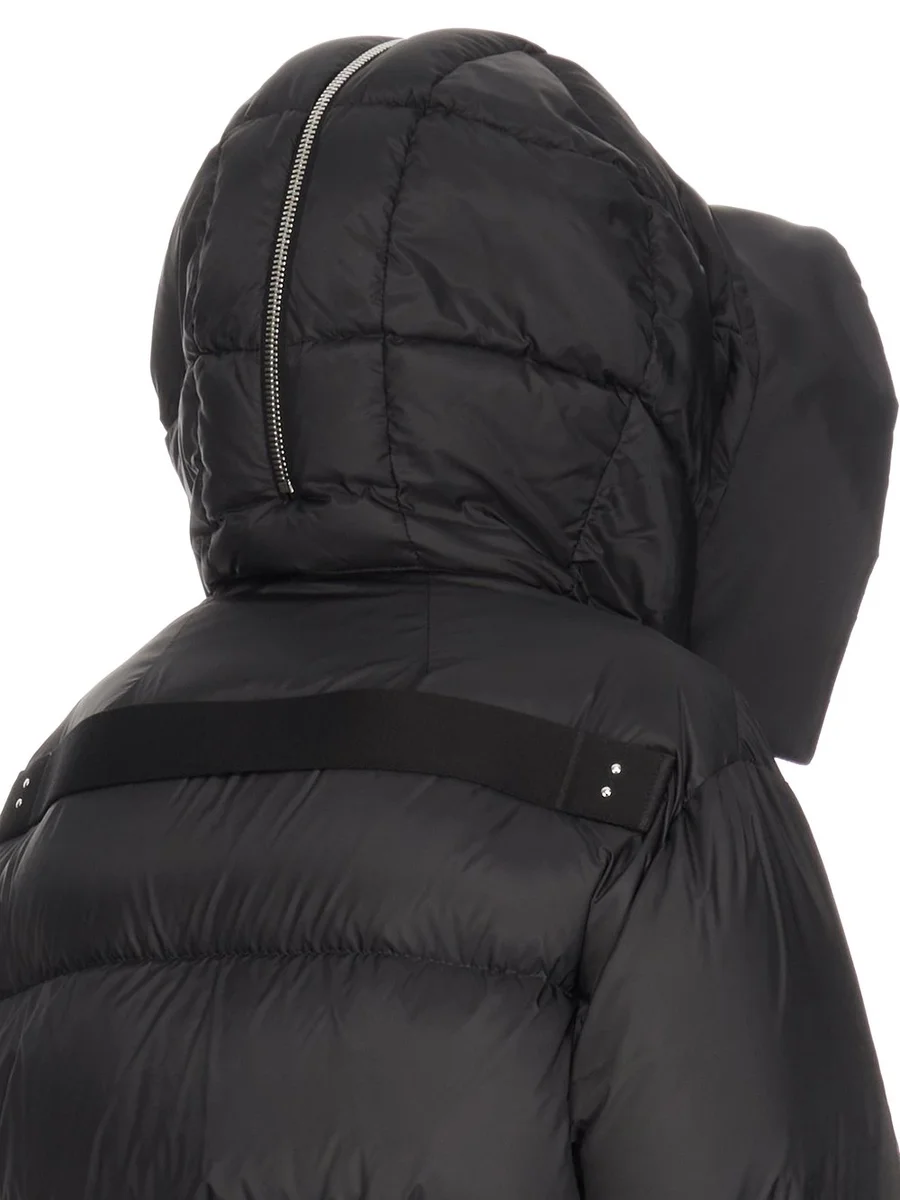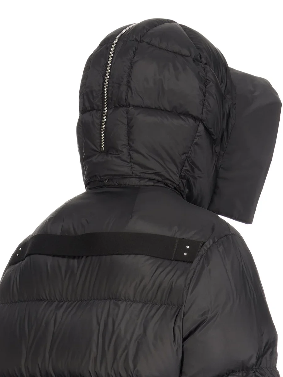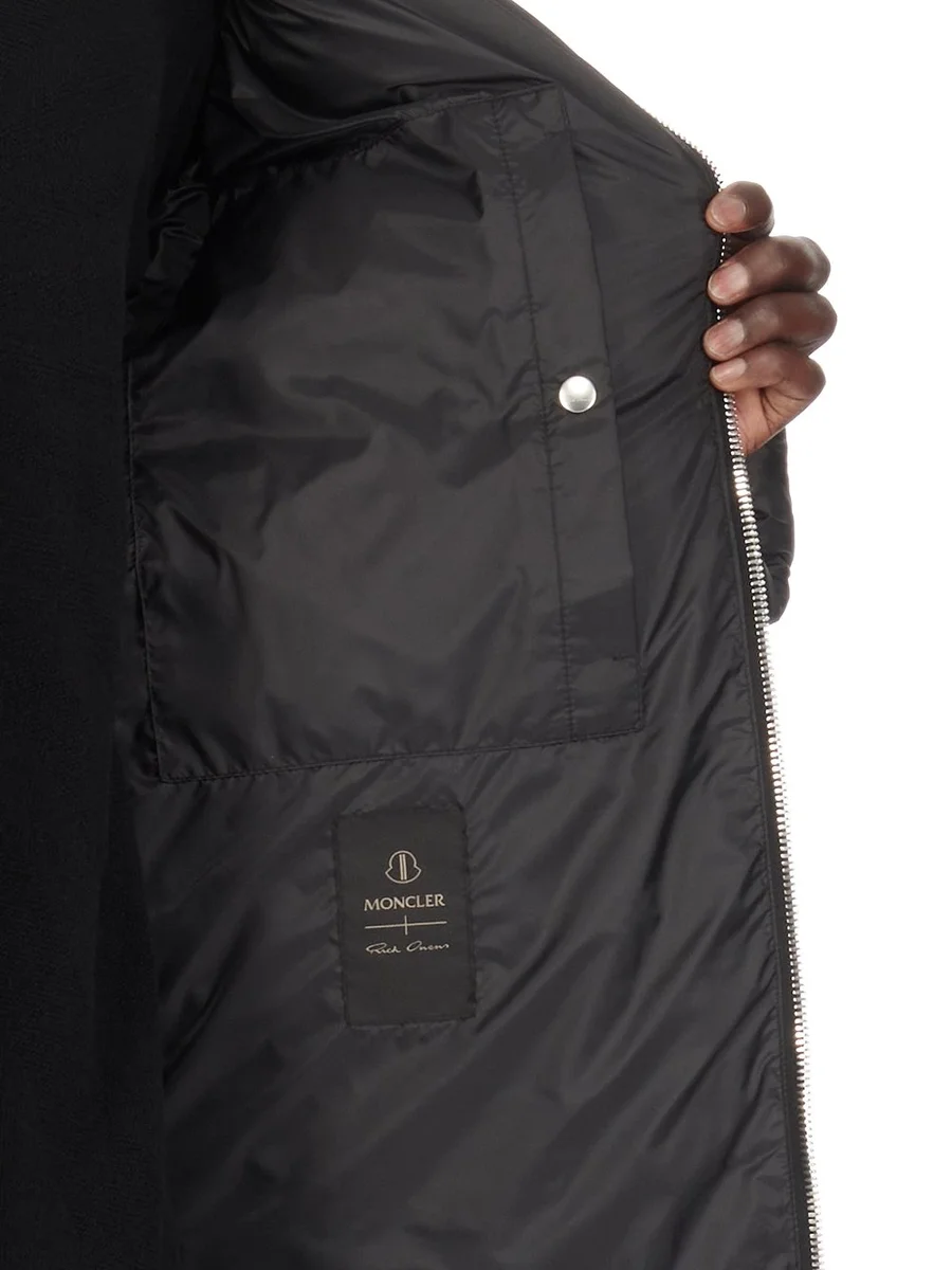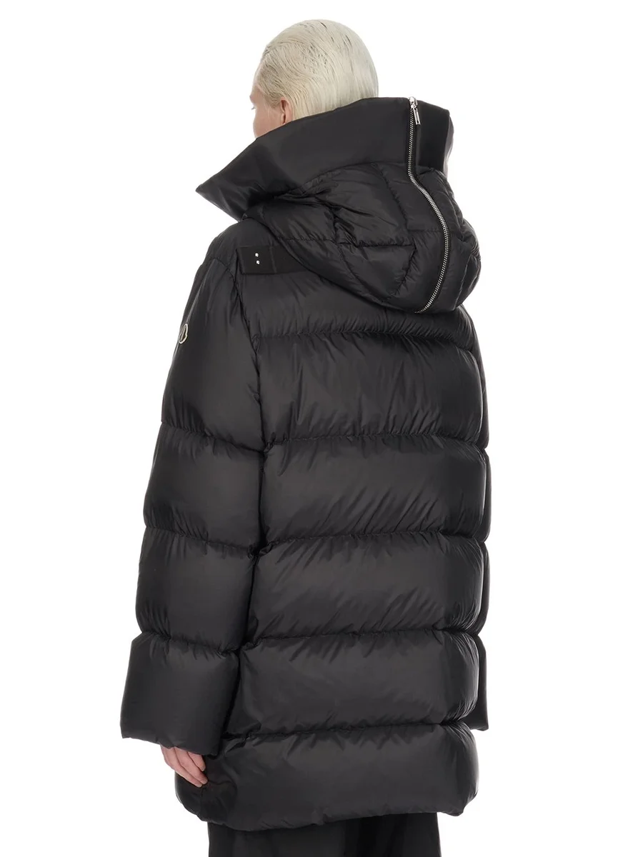 MONCLER + RICK OWENS FW24 CYCLOPISCHE JAS MET CAPUCHON IN ZWART GERECYCLED LONGUE SAISON