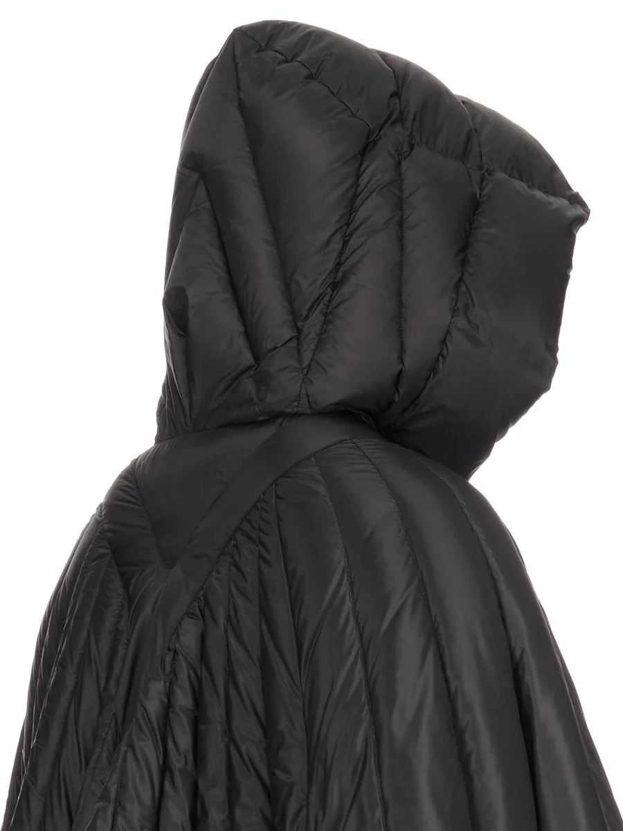 MONCLER + RICK OWENS FW24 DEKEN MET CAPUCHON RADIANCE IN ZWART GERECYCLED LONGUE SAISON MET RADIANCE QUILTING