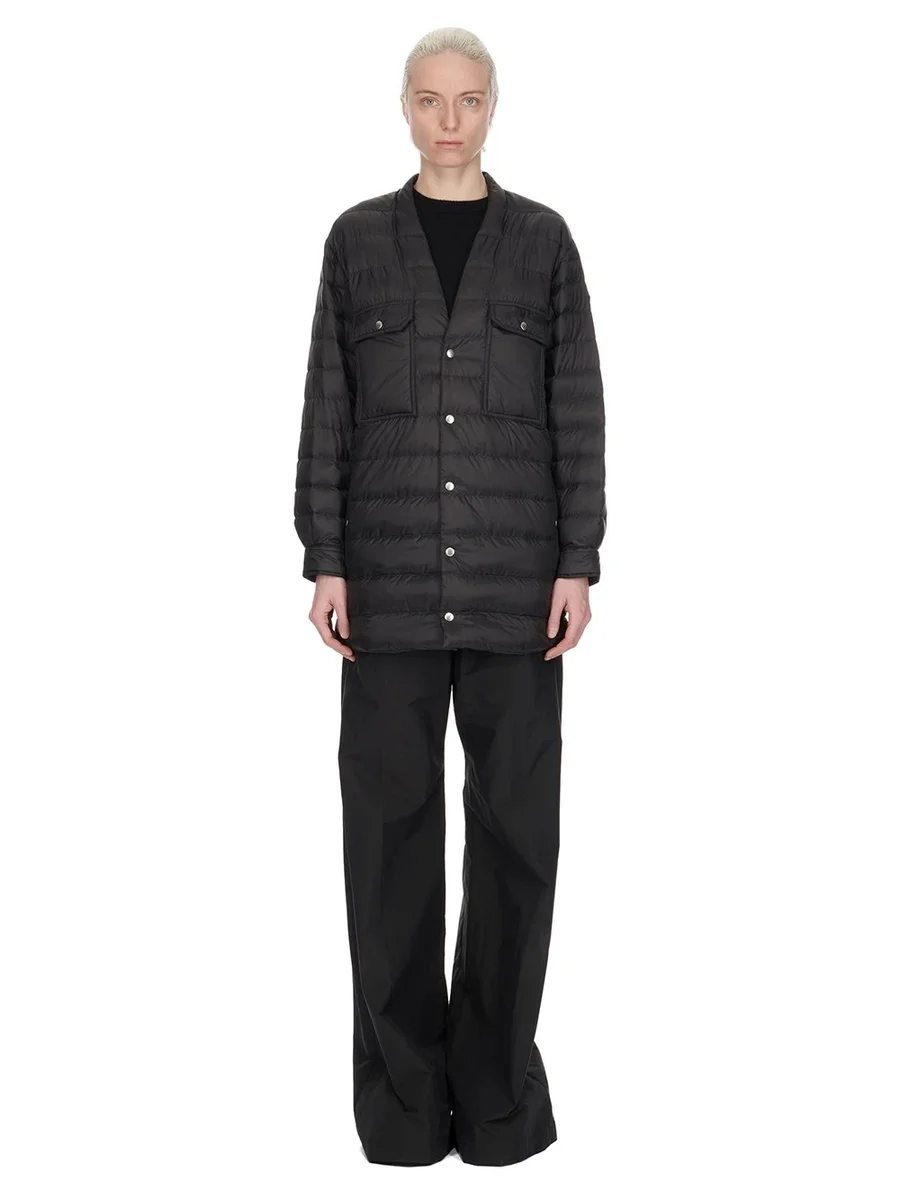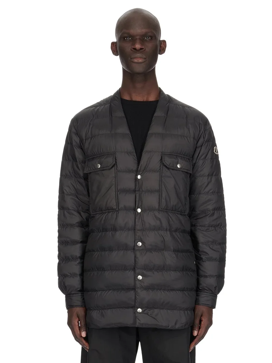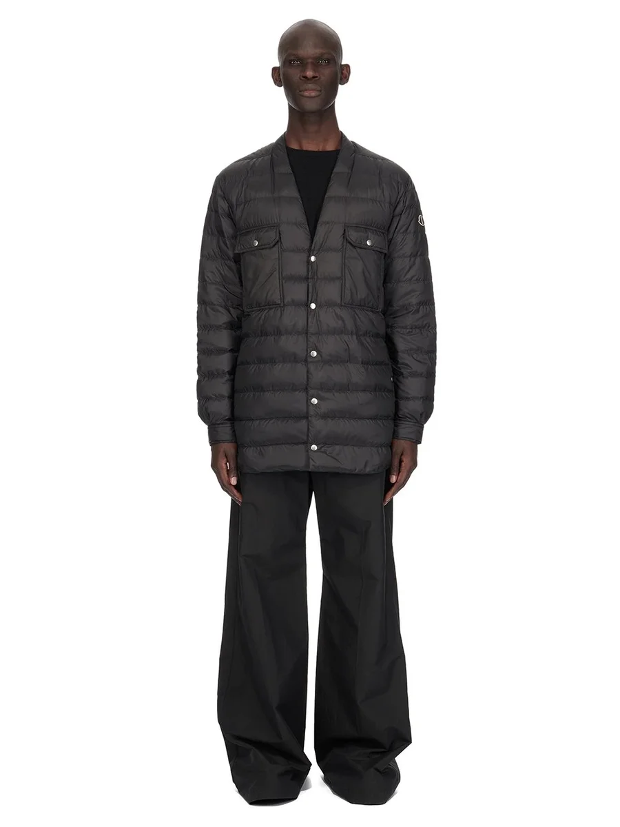 MONCLER + RICK OWENS FW24 OVERHEMD IN ZWART GERECYCLED LONGUE SAISON