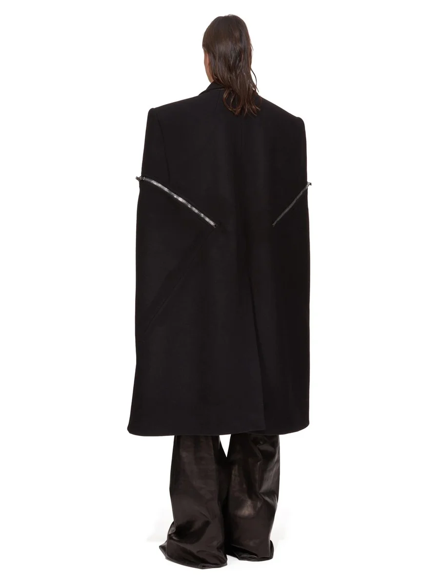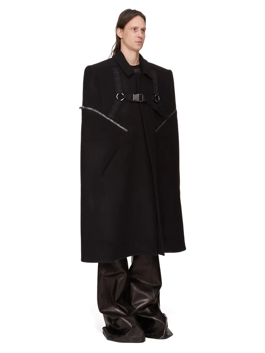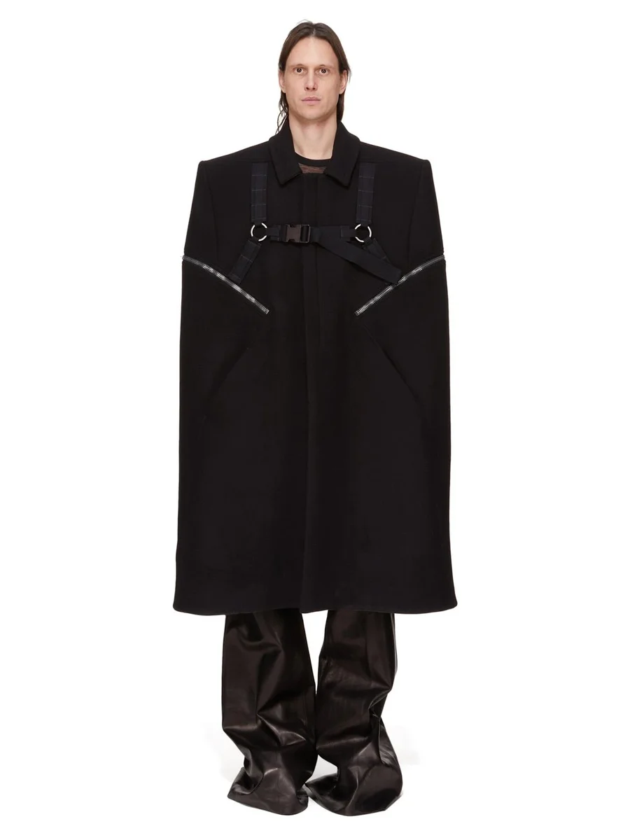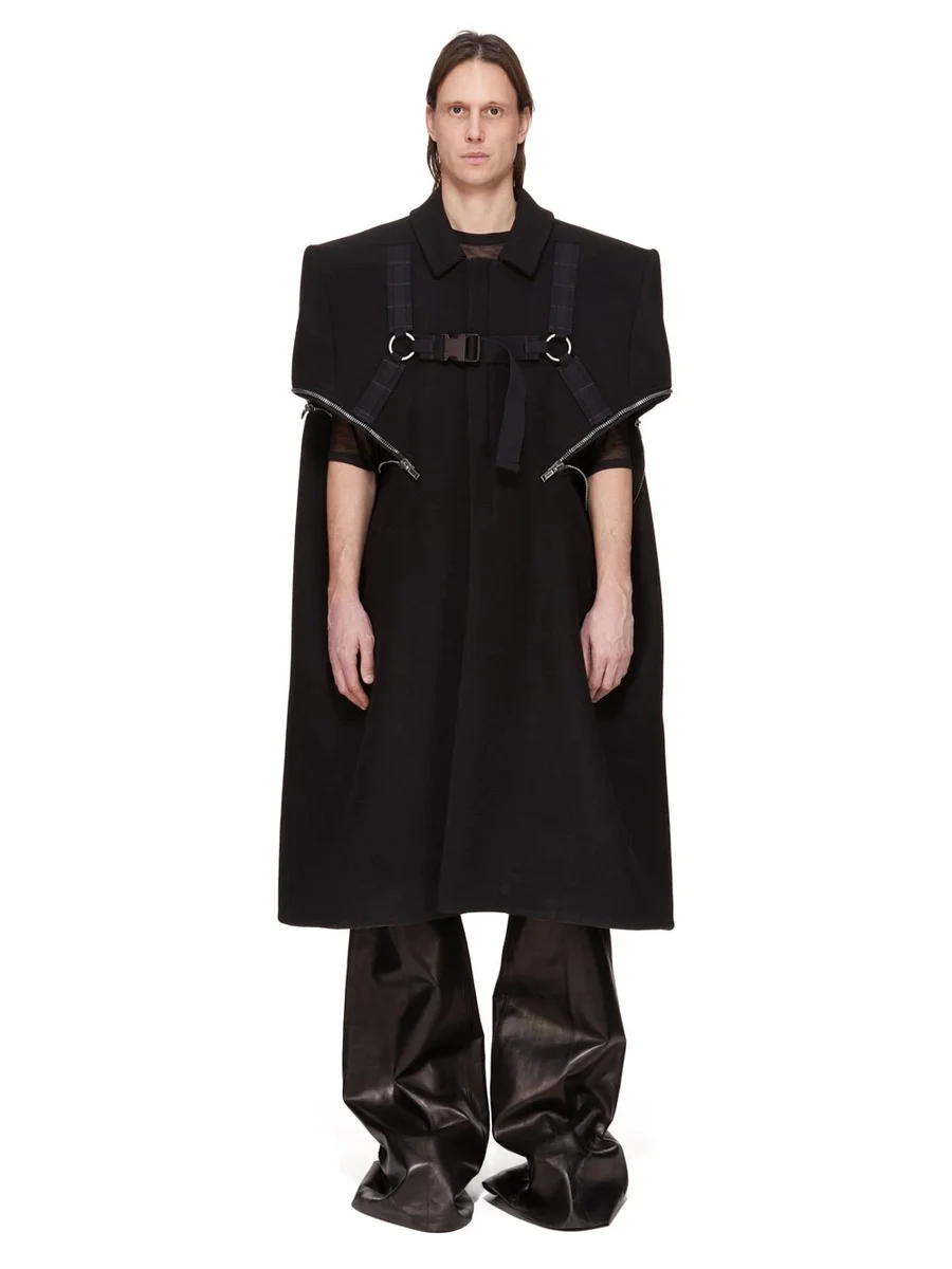 RICK OWENS FW25 CONCORDIANS RUNWAY BLIXA CAPE IN ZWART MELTON