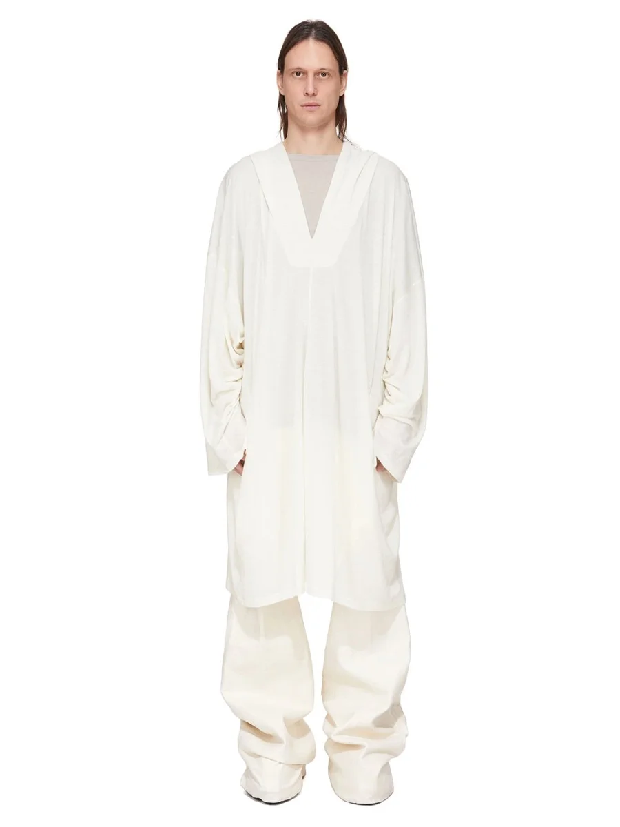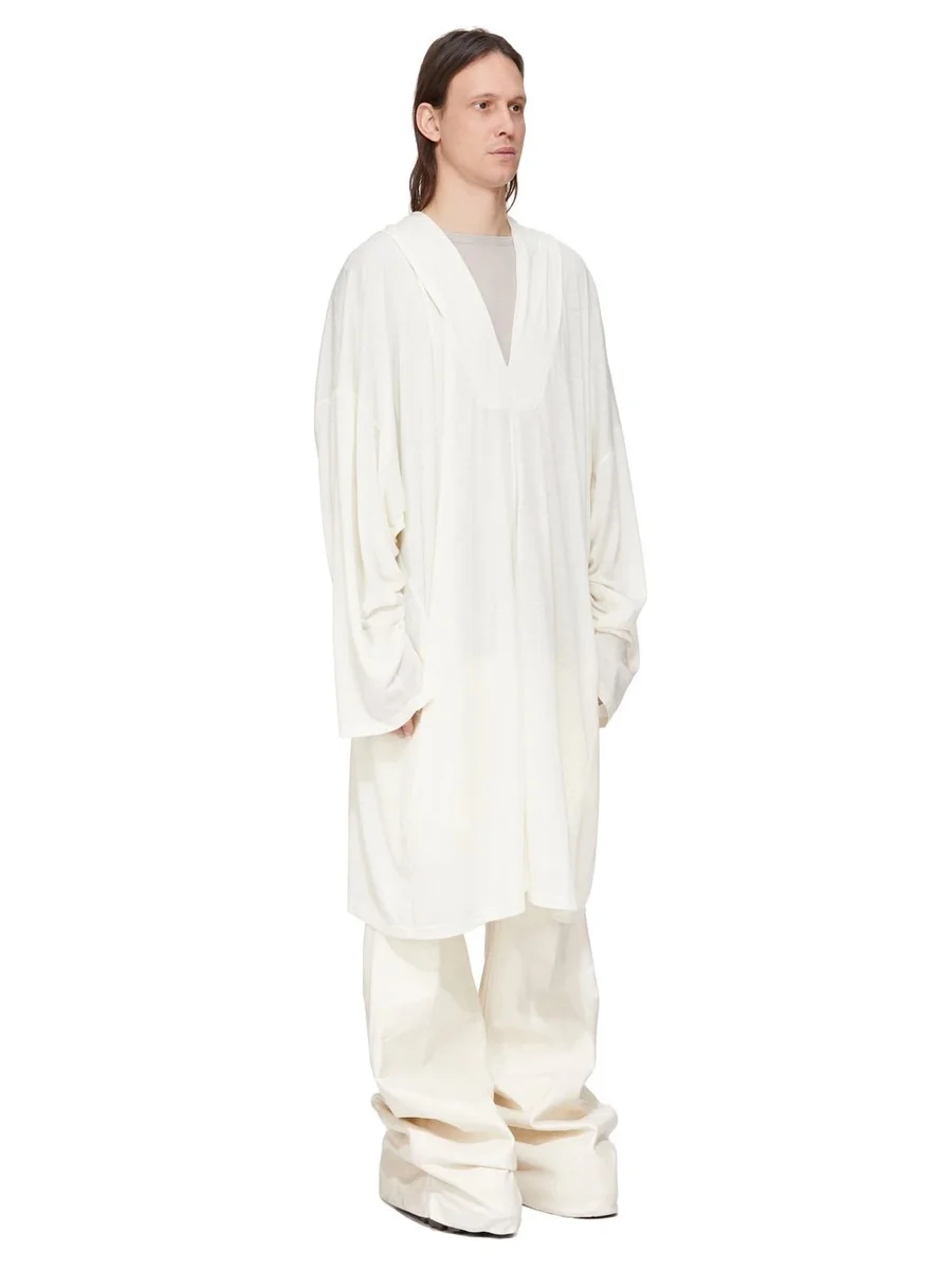 RICK OWENS FW25 CONCORDIANS RUNWAY LS KAFTAN KNIE IN NATUURLIJKE ZIJDEN WOLLEN JERSEY