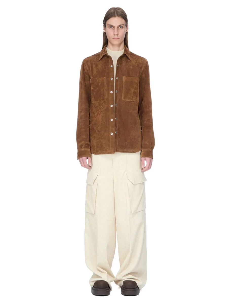 RICK OWENS FW25 CONCORDIANS OVERHEMD IN KASTANJEBLAUW SUÈDE