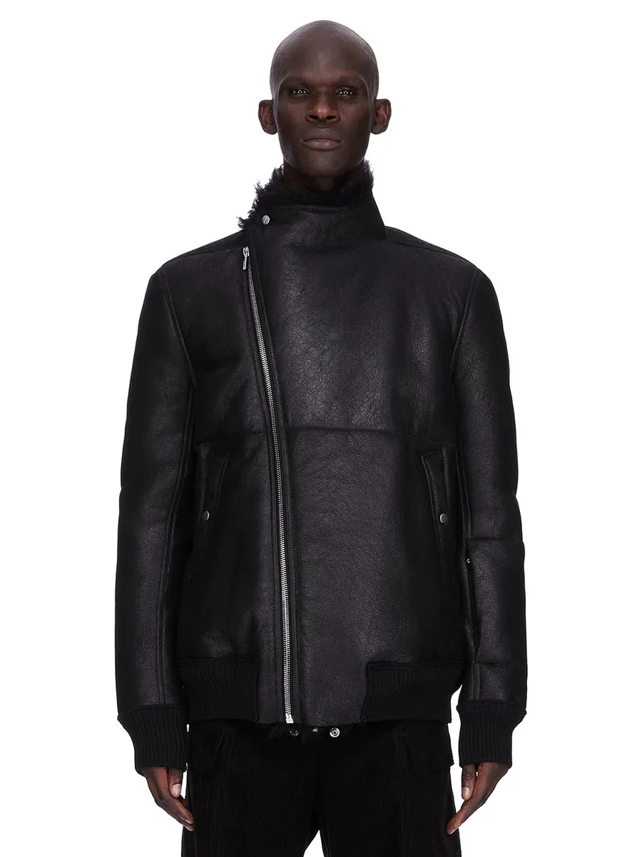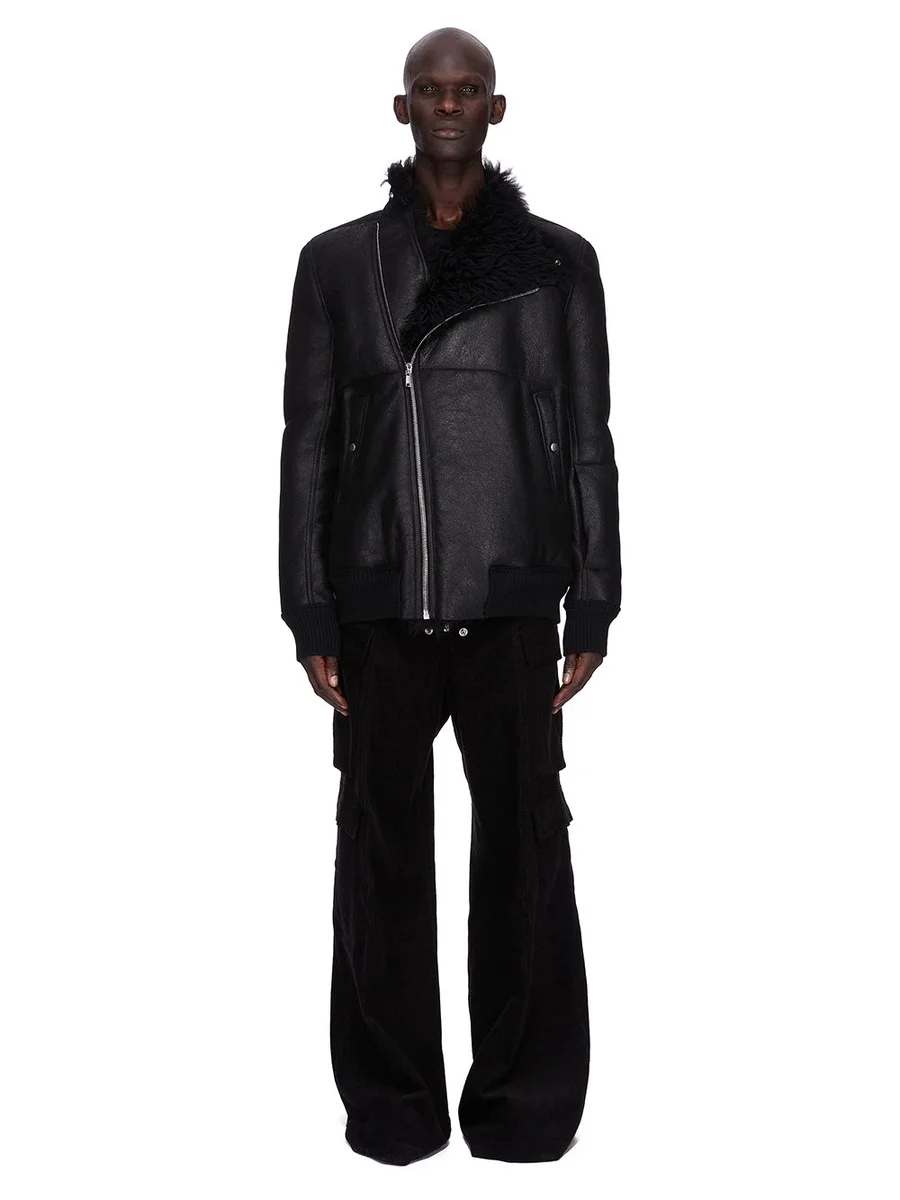 RICK OWENS FW25 CONCORDIANS HOLLYWOOD FLIGHT IN ZWART GEKRULDE SHEARLING