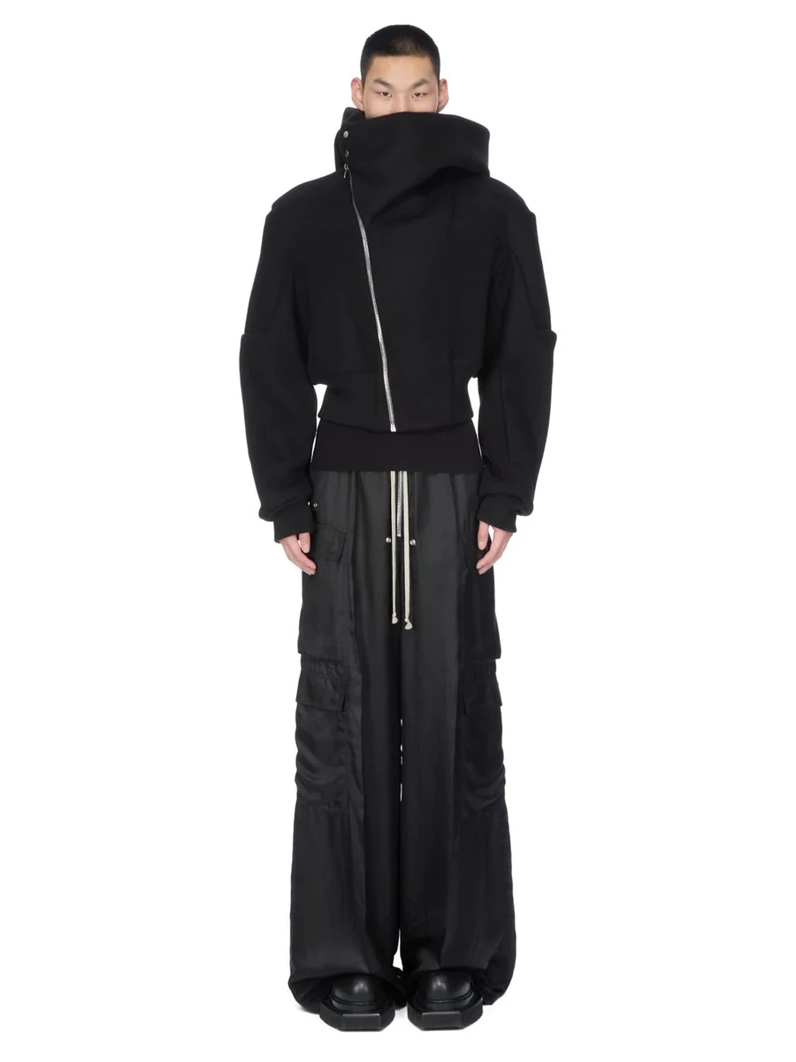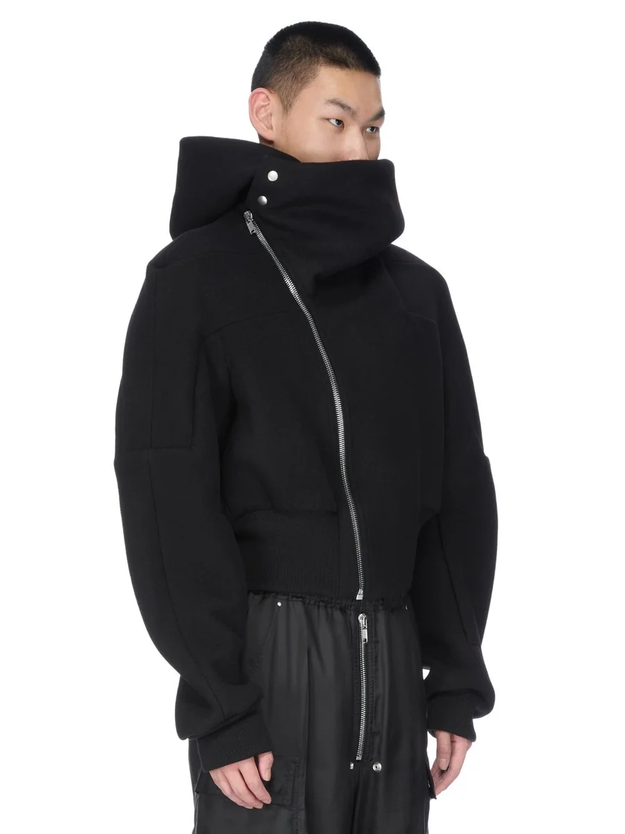 RICK OWENS FW25 CONCORDIANS CROPPED FLIGHT MET CAPUCHON IN ZWART MELTON