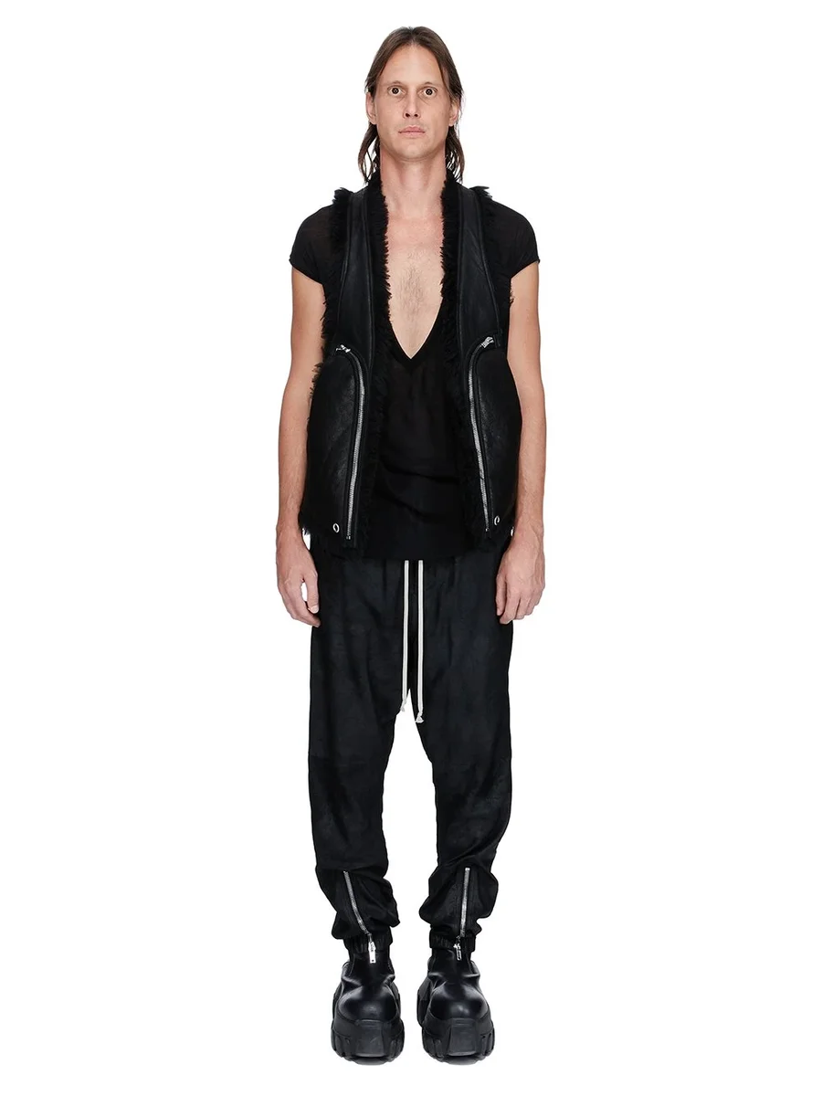 RICK OWENS FW25 CONCORDIANS BAUHAUS VEST IN ZWART GEKRULDE SHEARL