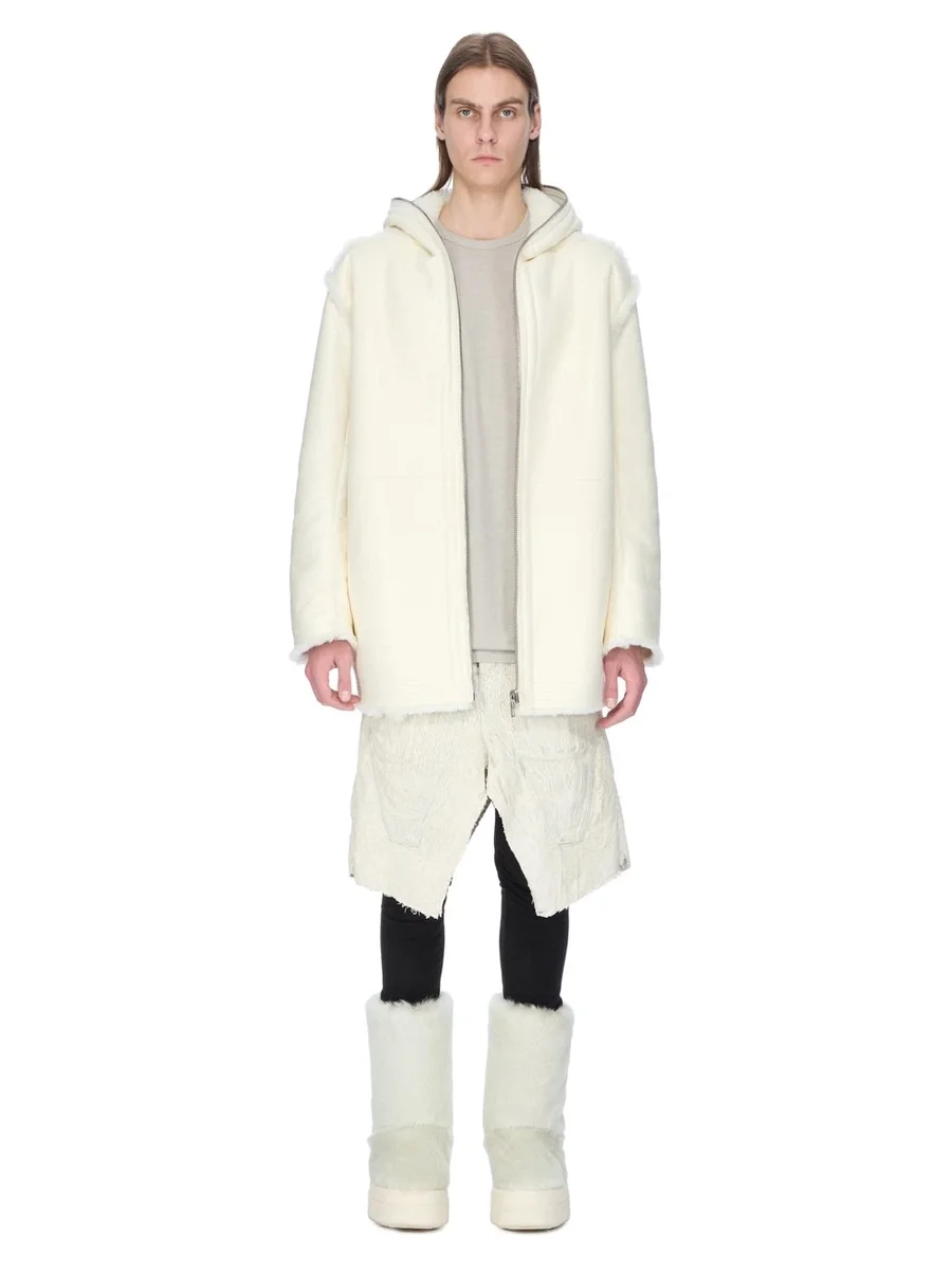 RICK OWENS FW25 CONCORDIANS GIMP MAC CROPPED IN ALBINO SHEARLING