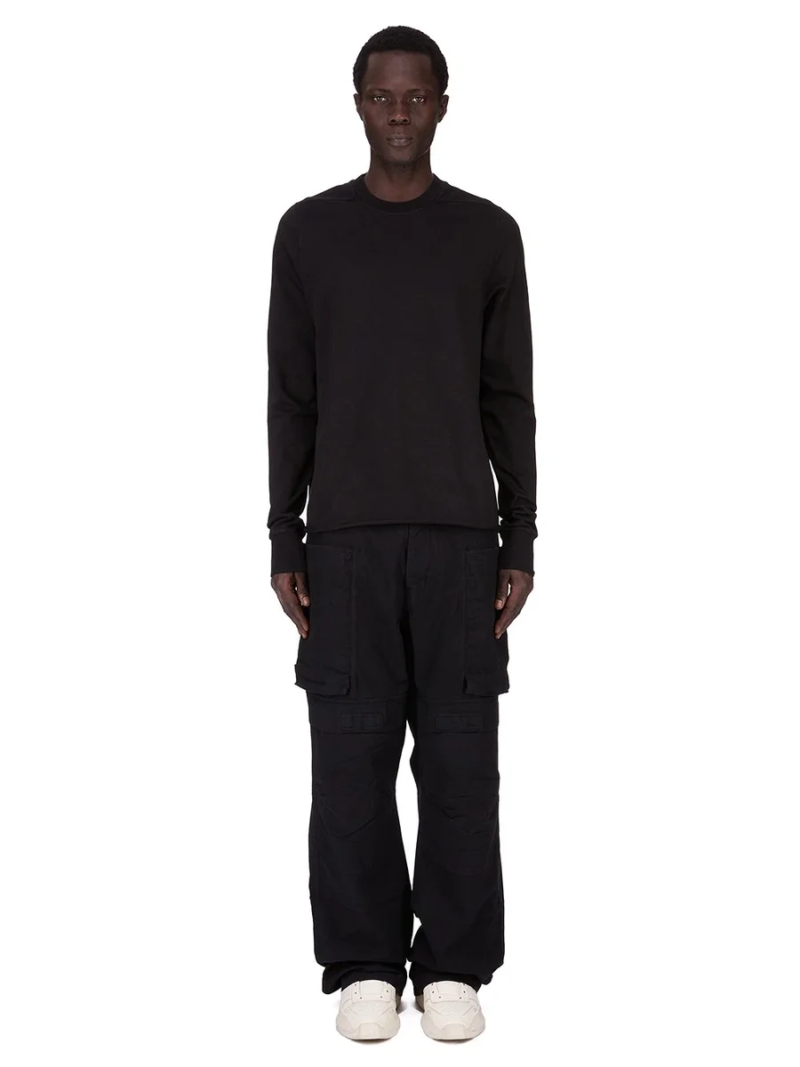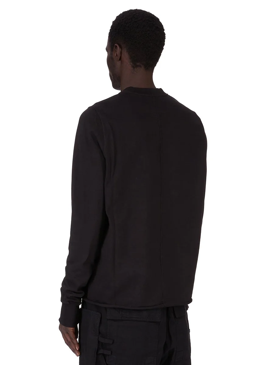DEZE CREWNECK SWEAT IS LANG TOT ONDER DE HEUP EN HEEFT LANGE MOUWEN. HET HEEFT EEN GERIBBDE CREWNECK, MANCHETTEN EN EEN RAUW GESNEDEN ZOOM. HET HEEFT DE KENMERKENDE SCHOUDERNADEN EN EEN ENKELE NAAD DIE OVER HET MIDDEN VAN DE ACHTERKANT LOOPT.