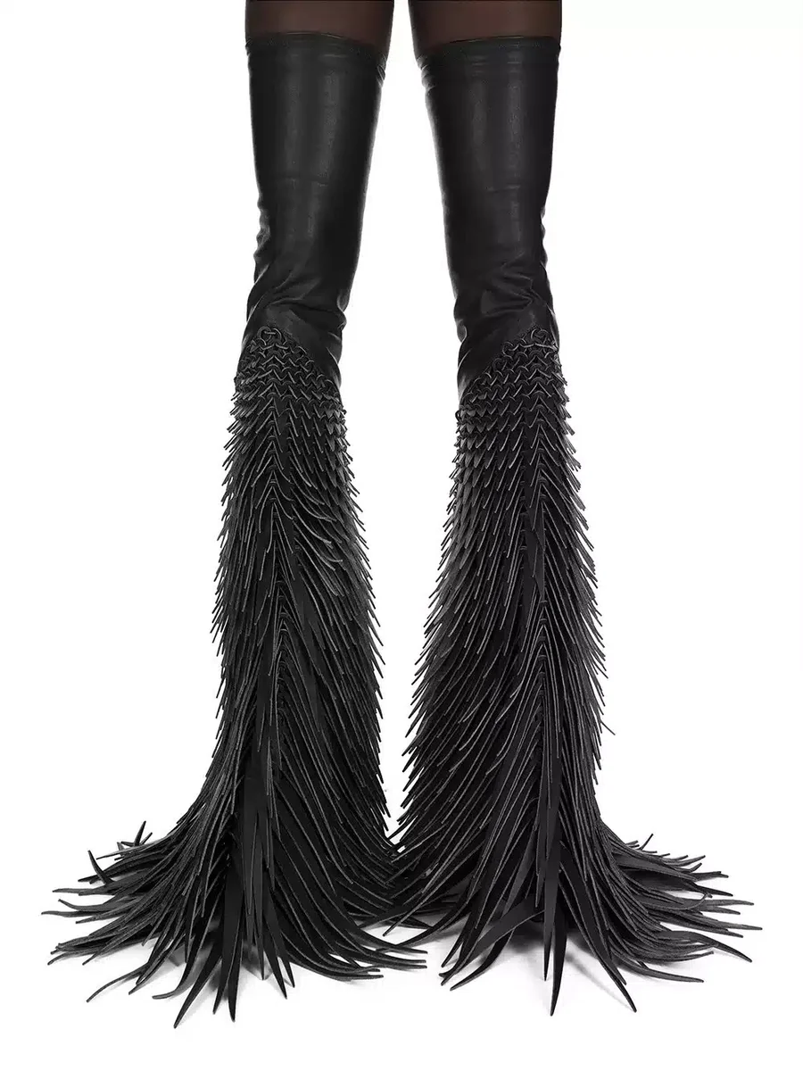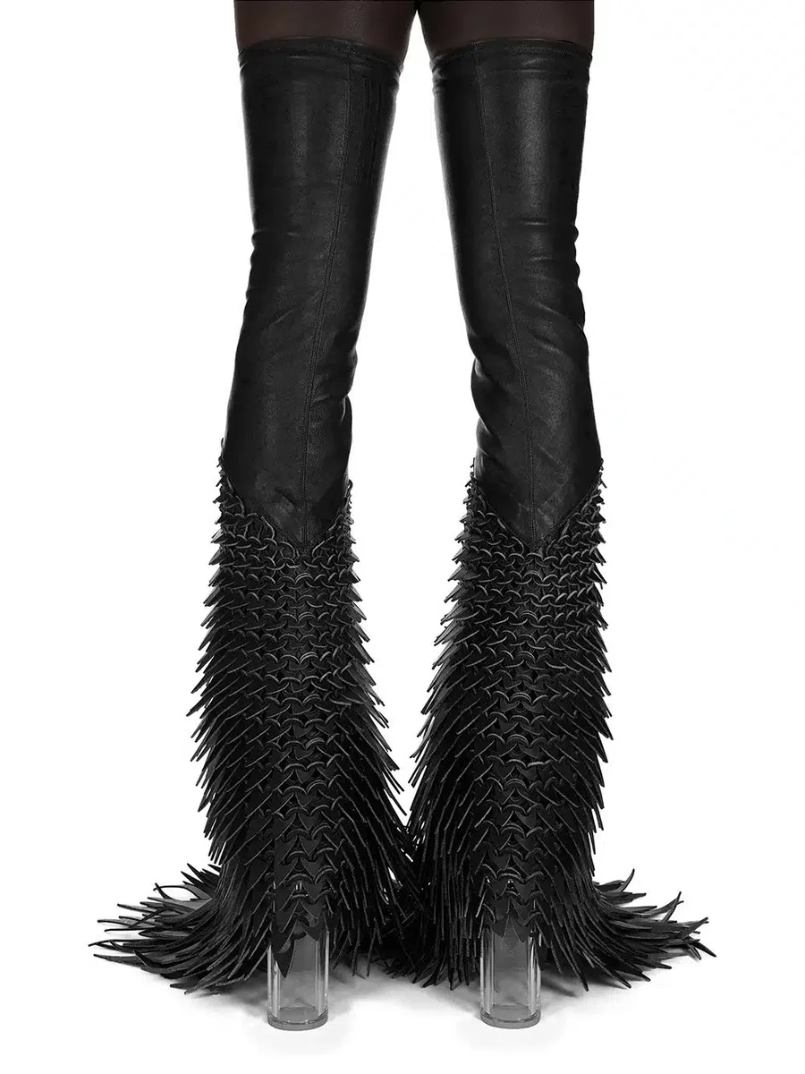 RICK OWENS FW25 CONCORDIANS RUNWAY MAILLIJST VOOR TACO KISS IN ZWART STRETCHLAMMENLEER EN GROPPONE RUNDELEER