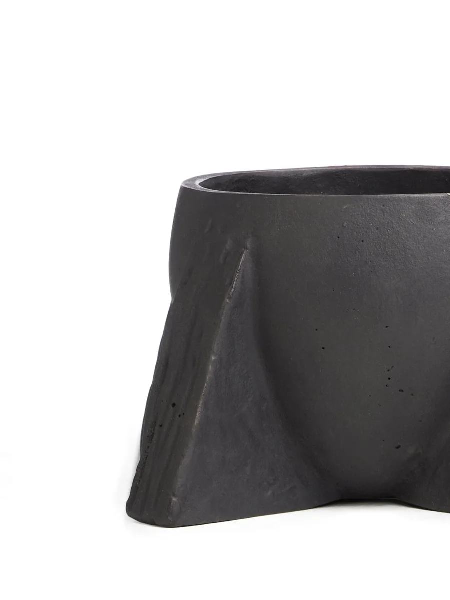 RICK OWENS COUPÉ IN ZWART BRONS HEEFT EEN HALF-OVALE VORM, VIER POTEN EN EEN LICHT ONREGELMATIG OPPERVLAK.