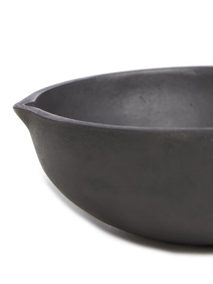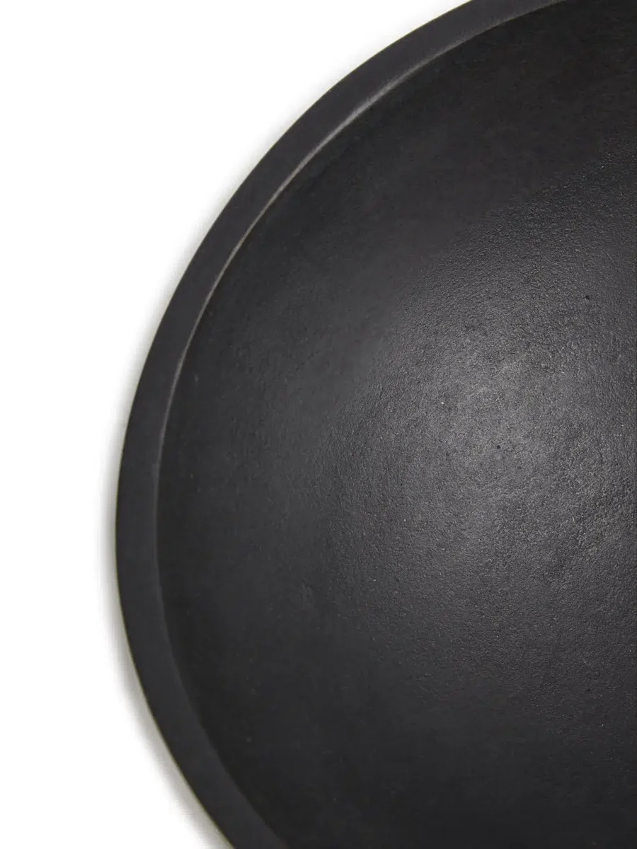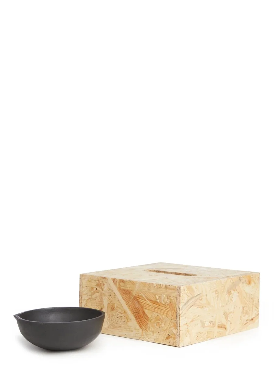 DE RICK OWENS KOM HEEFT EEN RONDE VORM EN EEN KLEIN DRIEHOEKJE EN EEN GEPOlijst OPPERVLAK.