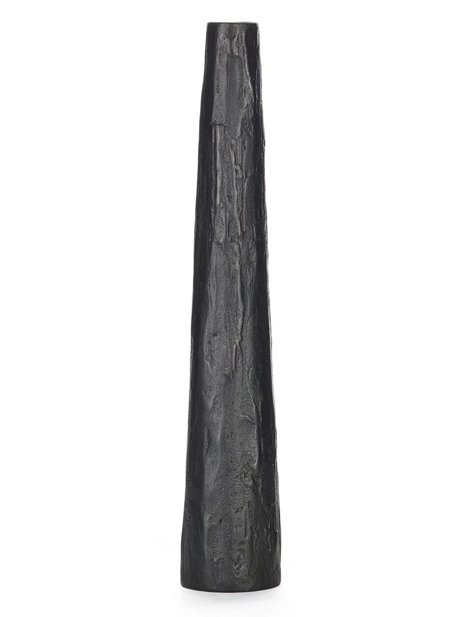 RICK OWENS GRANDE KAARSPIJLER IN ZWART BRONS HEEFT EEN SLANKE AFGEKOPTE VORM EN EEN LICHT ONREGELMATIG OPPERVLAK.