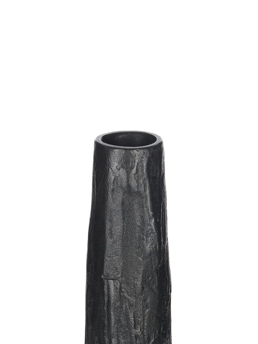 De RICK OWENS GRANDE KAARSPILLAR in zwart brons heeft een slanke, afgeknotte kegelvorm en een licht onregelmatig oppervlak.