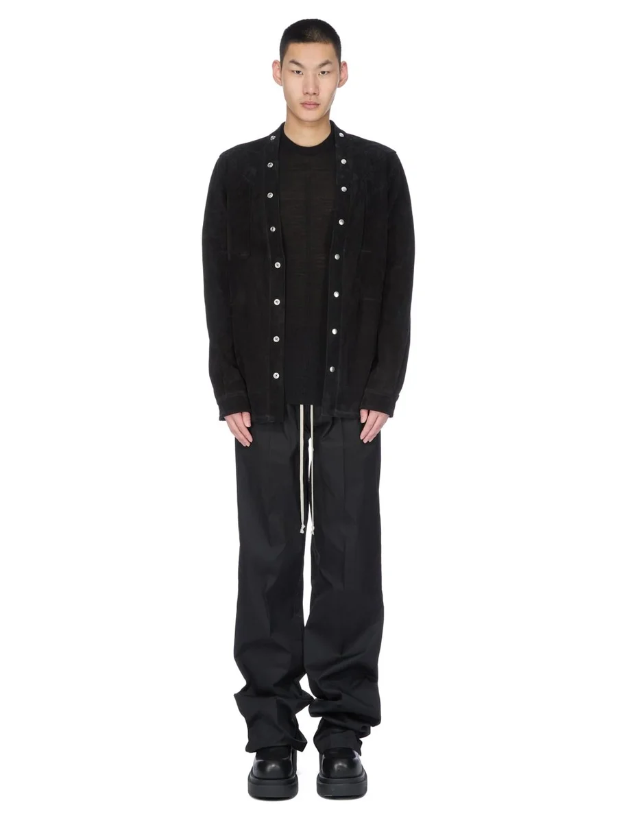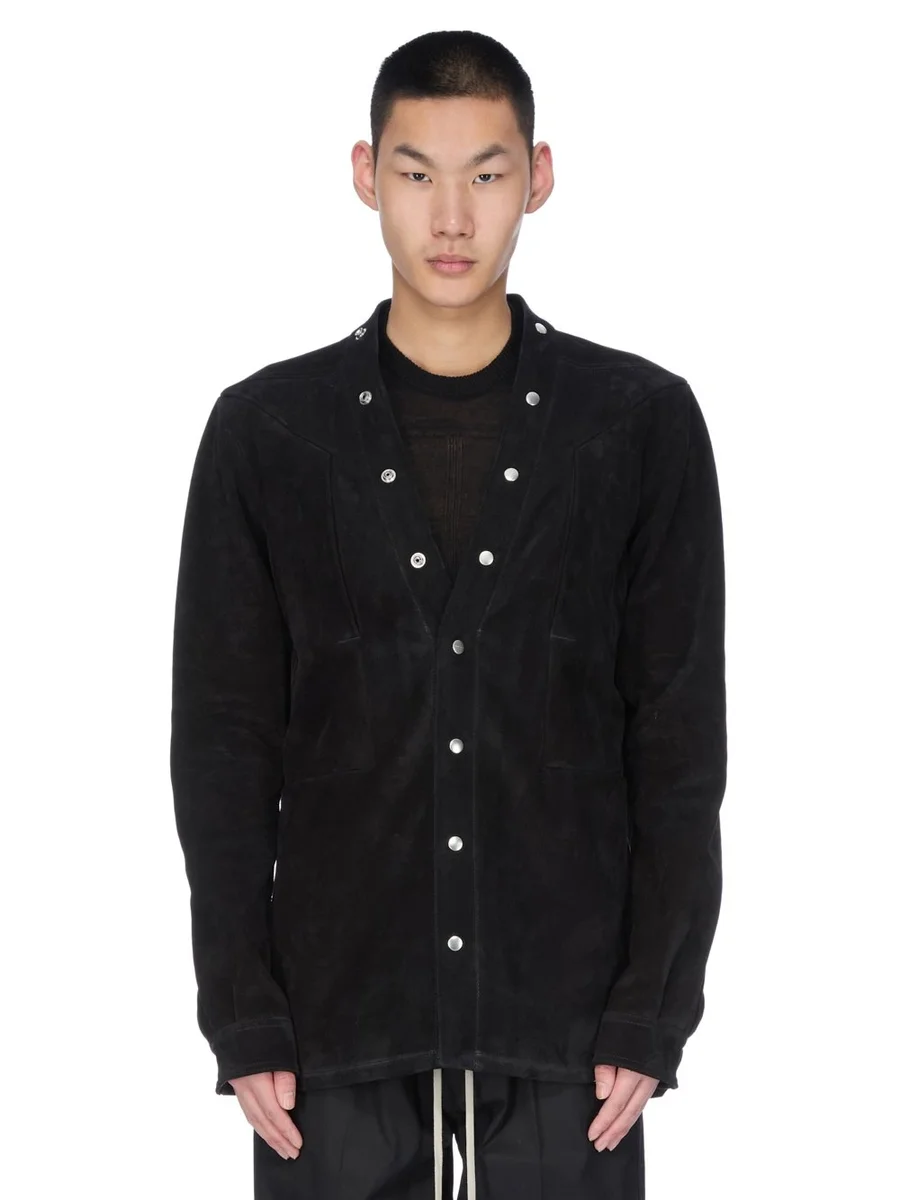 RICK OWENS FW25 CONCORDIANS LARRY FOGPOCKET SHIRT IN ZWART SUÈDE