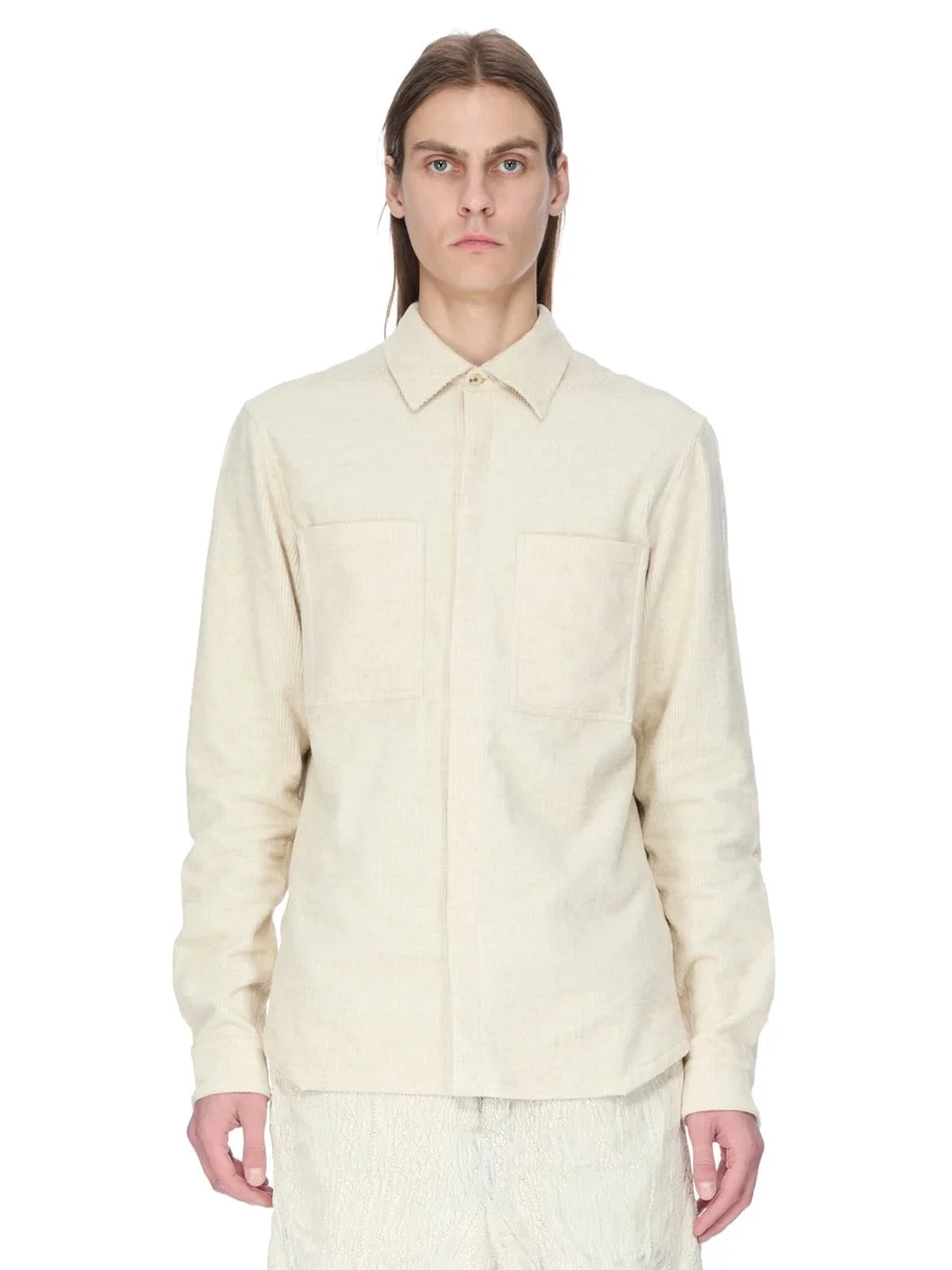 RICK OWENS FW25 CONCORDIANS WERKOVERHEMD IN NATUURLIJK LINNEN CORDUROY