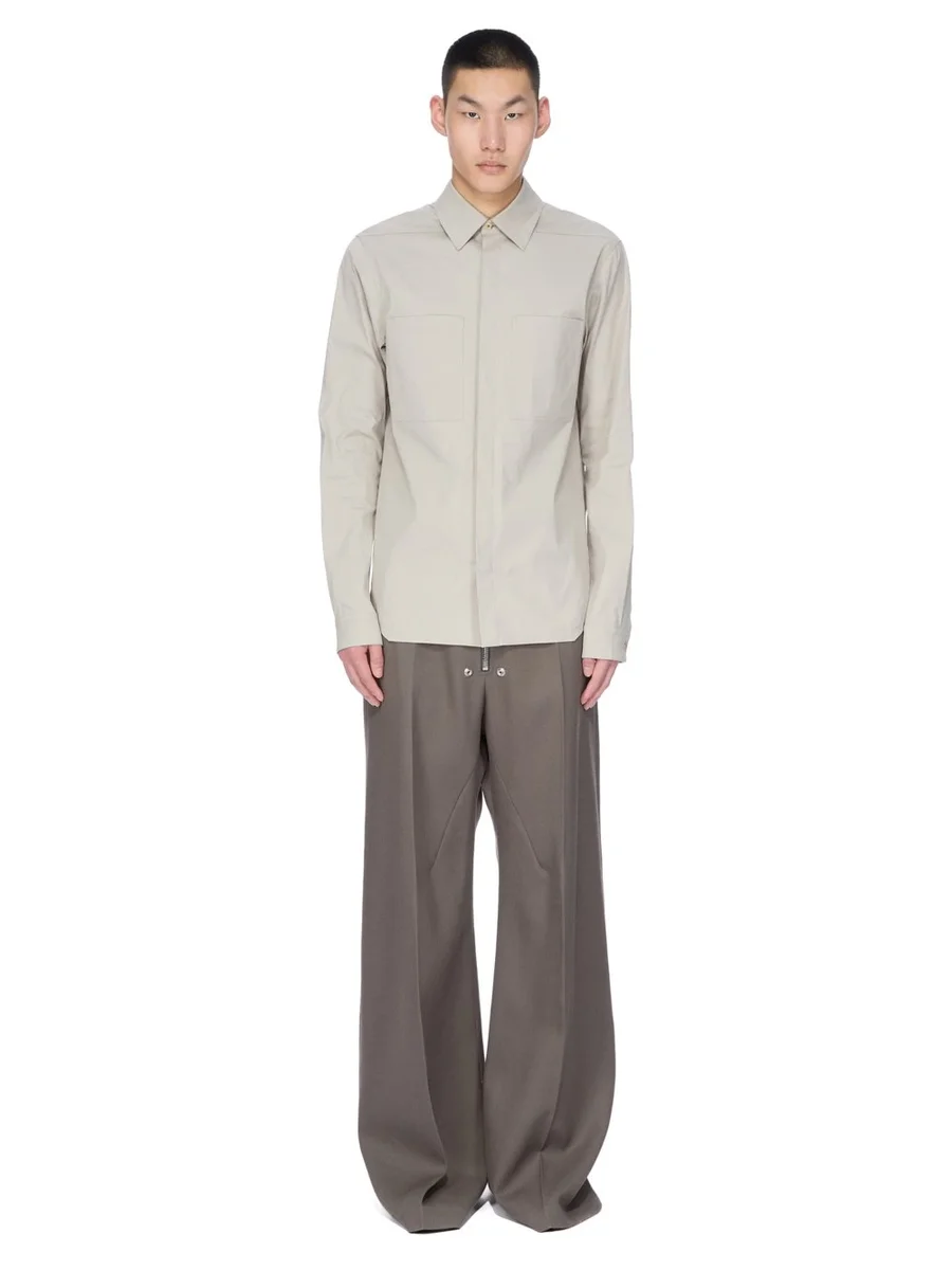 RICK OWENS FW25 CONCORDIANS WERKOVERHEMD IN ZWARE PARELMOERIGE KATOENEN POPELINE