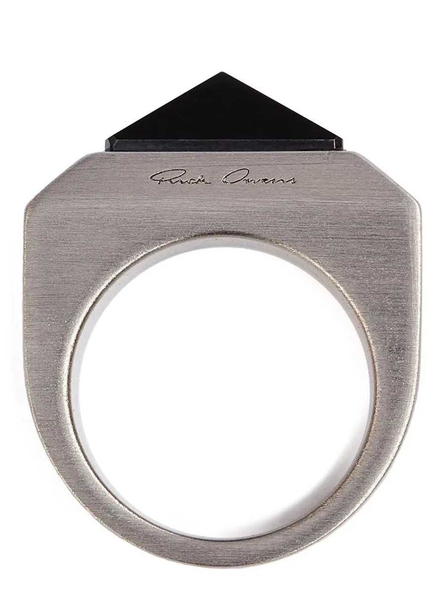 RICK OWENS KRISTALLEN PIRAMIDE RING IN MESSING EN HEMATIET