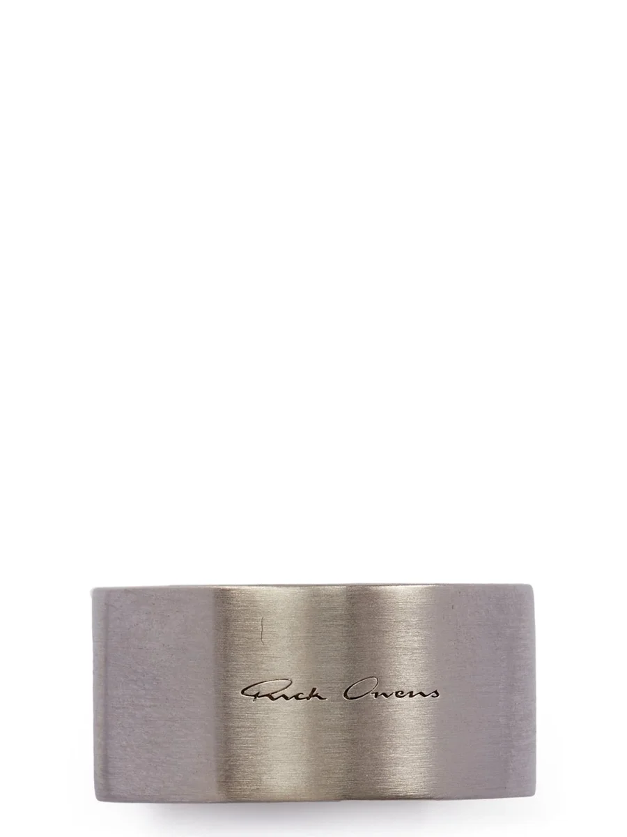 DEZE GRILLRING IS EEN DIKKE BAND MET TWEE GRILLOPENINGEN. OP DE ACHTERKANT IS HET RICK OWENS-LOGO GEGRAVEERD.