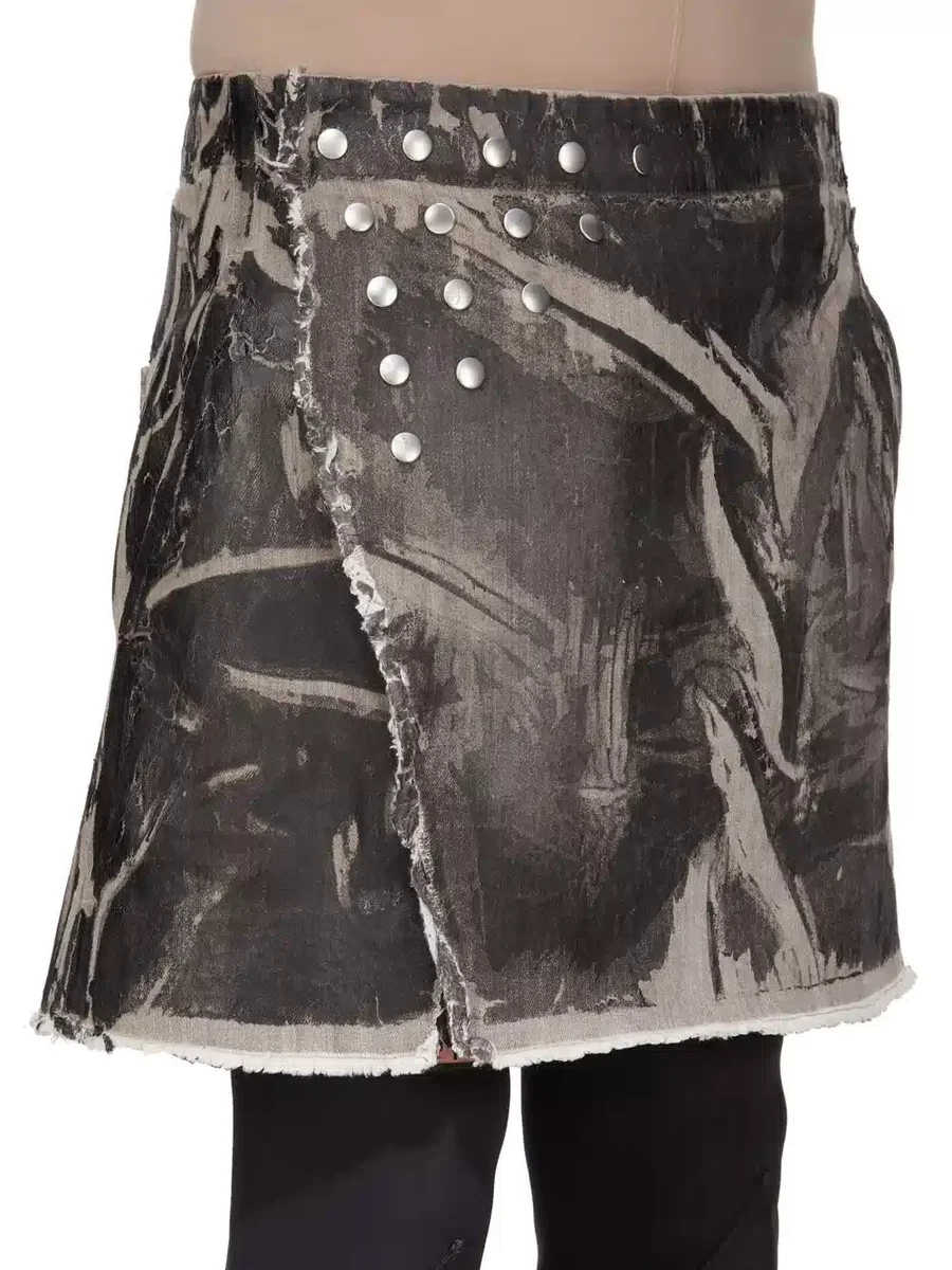 DEZE SISYSNAP ROK IS HALFHOOG. HIJ HEEFT EEN FUNCTIONELE DRUKSLUITING EN EEN DECORATIEF DRUKKNOOPDETAIL OP DE RECHTERHEUP. HIJ HEEFT ZIJZAKKEN, OPGEPASTTE ACHTERZAKKEN, EEN RECHTERZIJDE SPLIT EN EEN RAUW GESNEDEN RAND EN ZOOM.