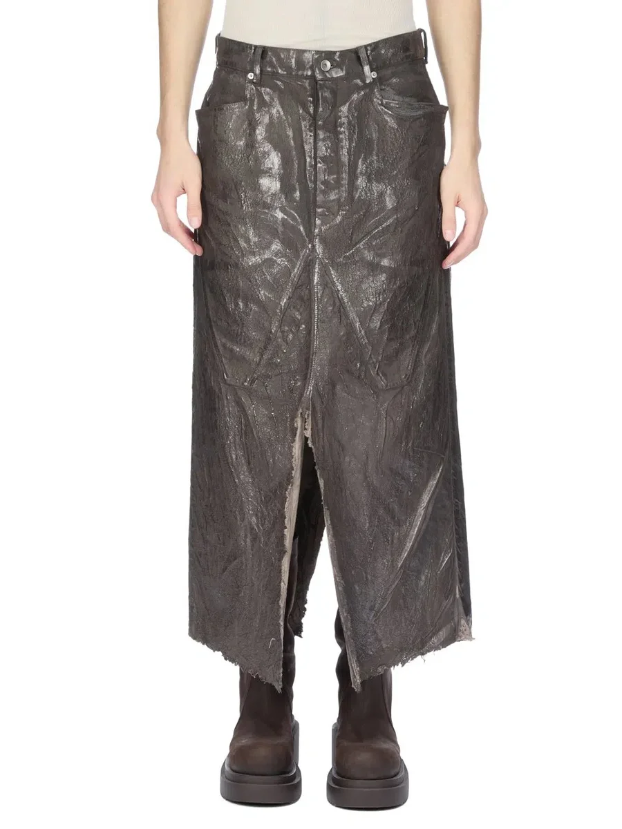 RICK OWENS FW25 CONCORDIANS LANGE ROK MET SLIVERS IN 13 OZ BRONZEN MEGACRUST DENIM