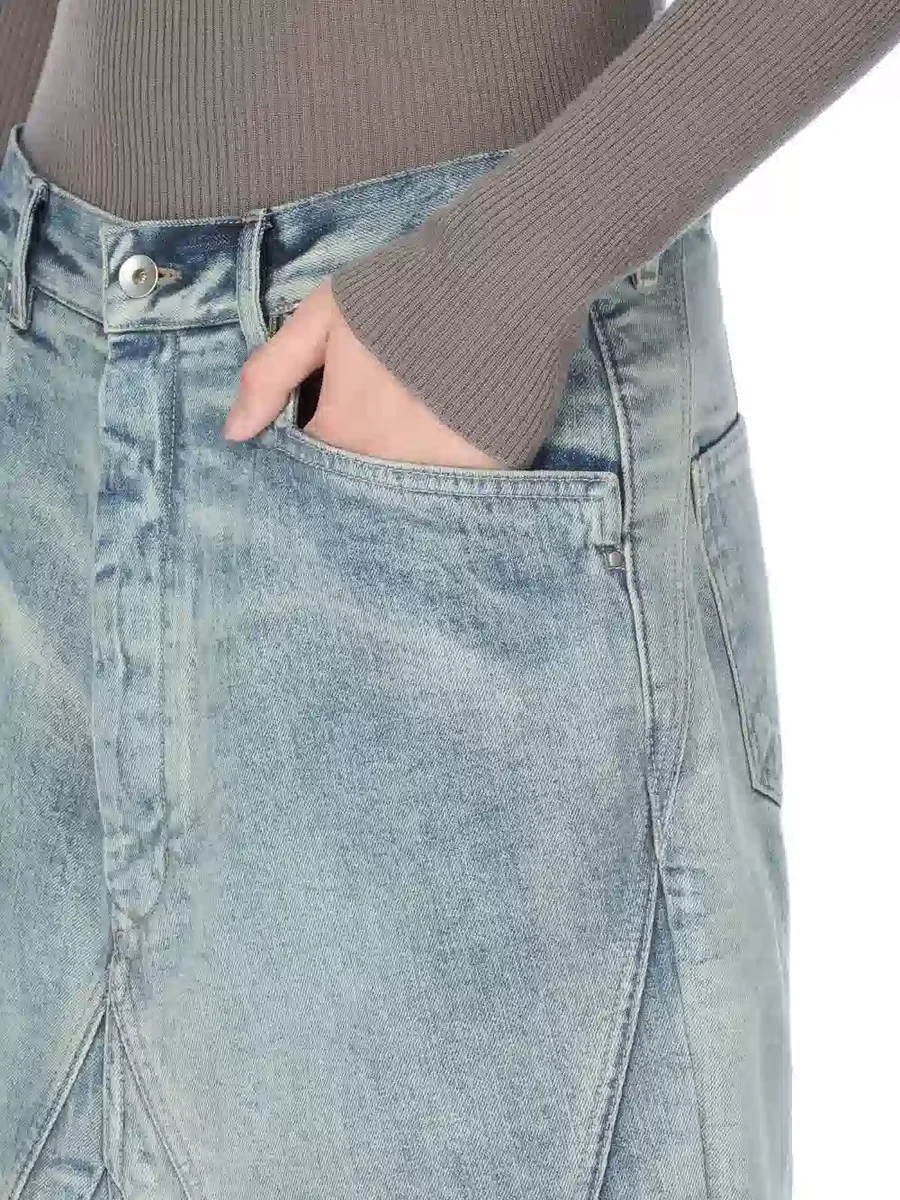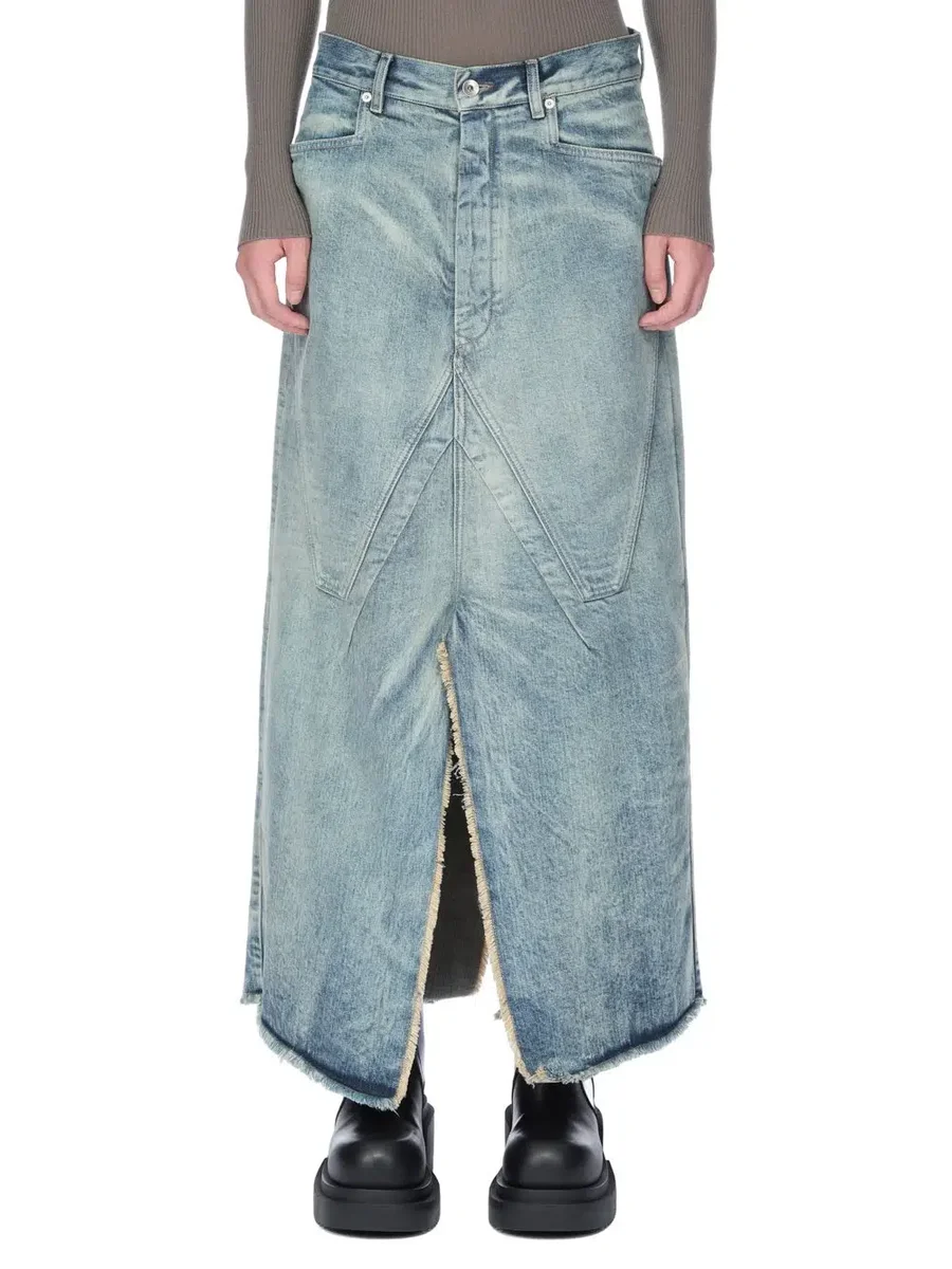 RICK OWENS FW25 CONCORDIANS LANGE VERLIPTE ROK IN 14 OZ HUSTLER SLUB DENIM