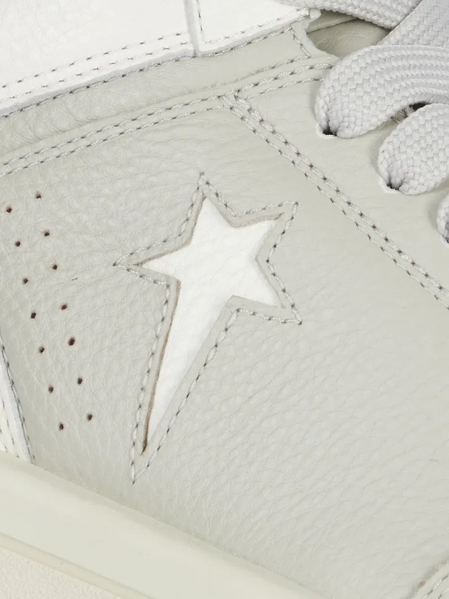 DEZE HOGE SCHOEN MET HOOGWAARDIG LEDEREN BOVENWERK EN VETERSLUITING IS GEBASEERD OP HET KLASSIEKE CONVERSE “WEAPON”-MODEL DAT UIT HET MIDDEN VAN DE JAREN 80 KOMT EN BEROEMD WERD GEDRAGEN DOOR BASKETBALSPELER