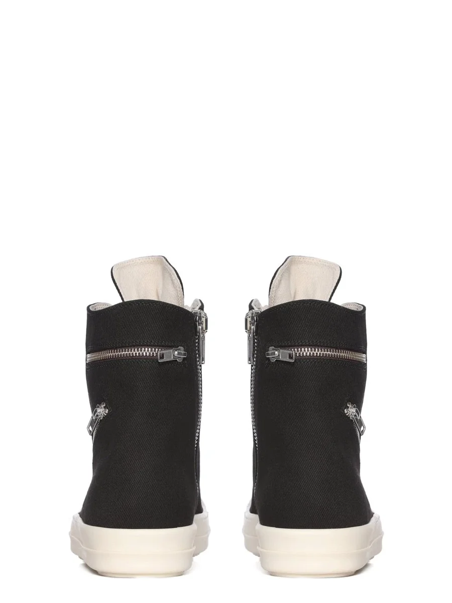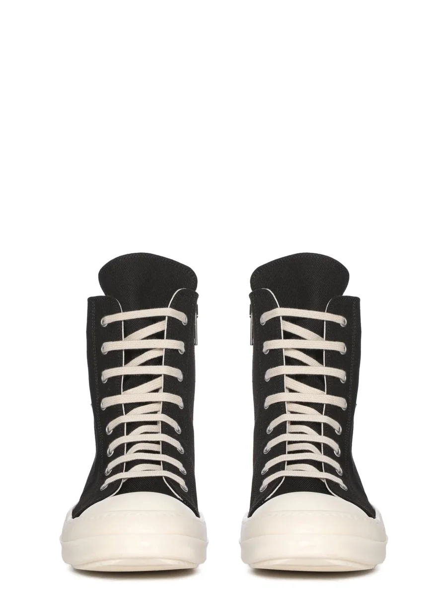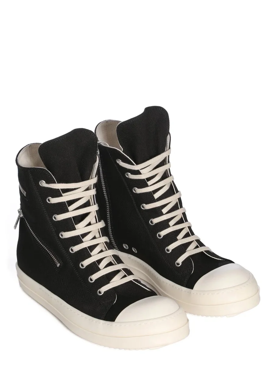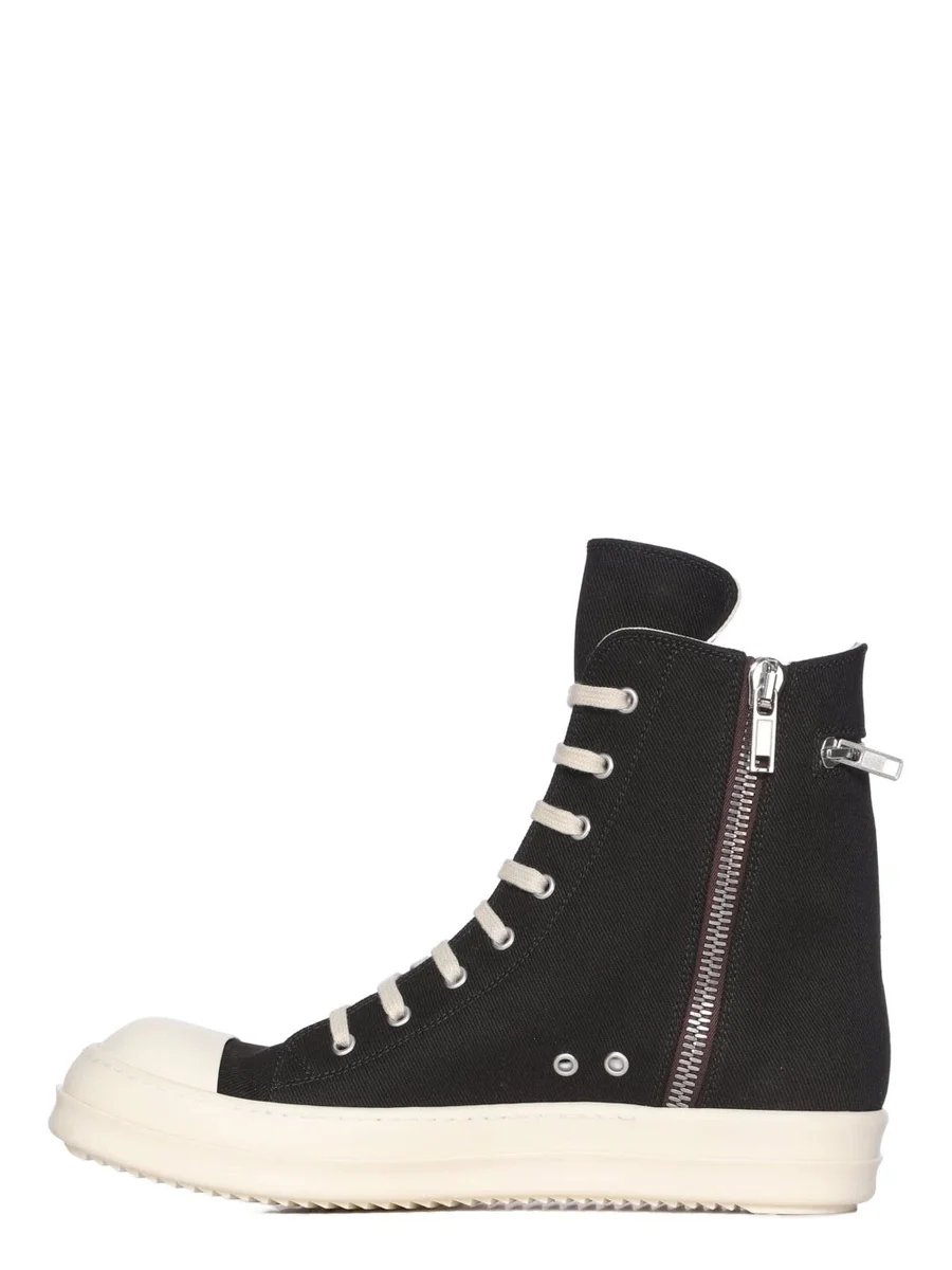 DEZE CARGO SNEAKS ZIJN HOOG TOT DE ENKEL EN HEBBEN ACHT OOGELTJES, VETERS, EEN RITS AAN DE BINNENKANT VAN DE ENKEL VOOR EENVOUDIG SLUITEN, NEUSKAPPEN EN EEN VOETVOERING MET HAAIENTANDEN. DEZE VERSIE HEEFT EEN SCHUINE CARGO-RITS AAN DE BUITENVOET EN EEN HORIZONTALE RITS ROND DE ENKEL.
